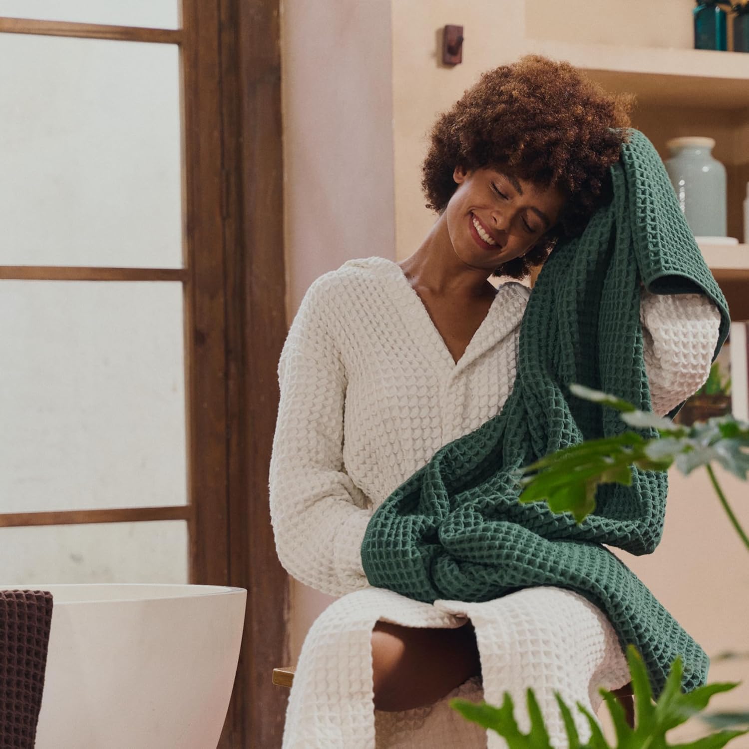 Luxury Japanese Cotton Waffle Bath Towel | Plush, Absorbent, and Quick Dry | Free Storage Bag Included (Forest Green, Bath Sheet, 67" x 34")