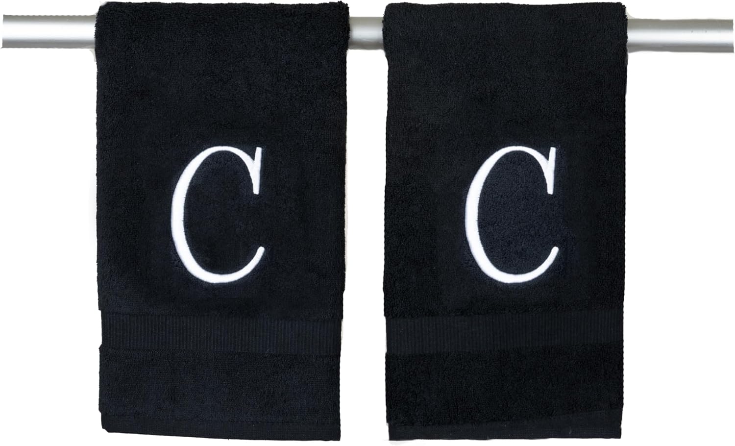 Black Initial Hand Towel for Bathroom - Monogrammed Luxury Hotel Quality Decorative Embroidered Towel for Powder Room, Spa - GOTS Organic Certified - Pack of 2 - Letter C