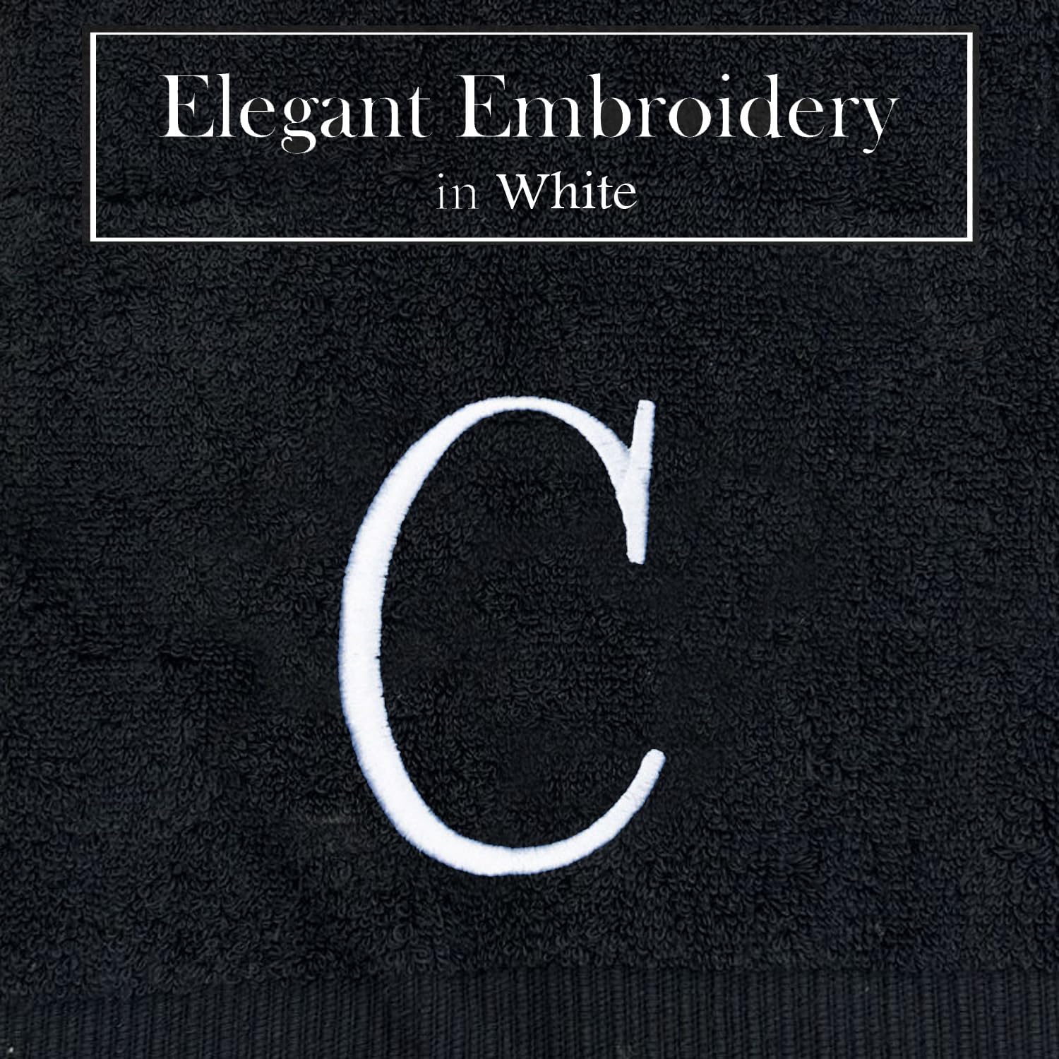 - Premium Quality - High quality durable soft rich monogram letter hand towels in black cotton with white stitching