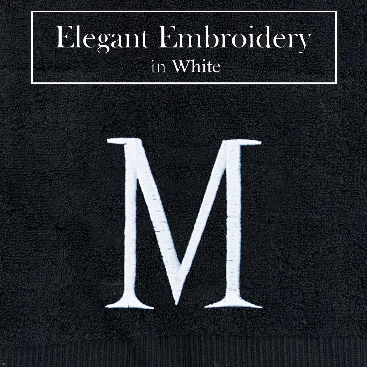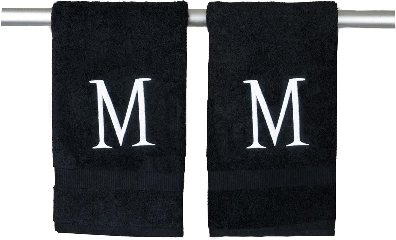 Black Initial Hand Towel for Bathroom - Monogrammed Luxury Hotel Quality Decorative Embroidered Towel for Powder Room, Spa - GOTS Organic Certified - Pack of 2, Letter M