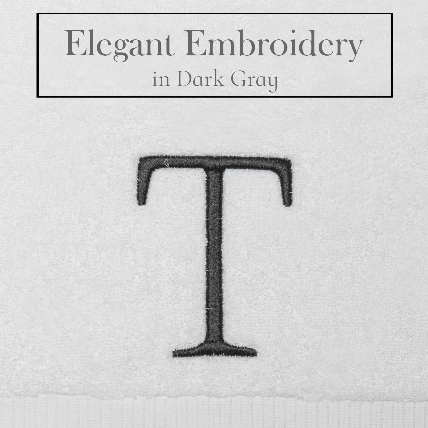 - Premium Quality - High quality durable soft rich monogram letter hand towels in white cotton with dary gray stitching