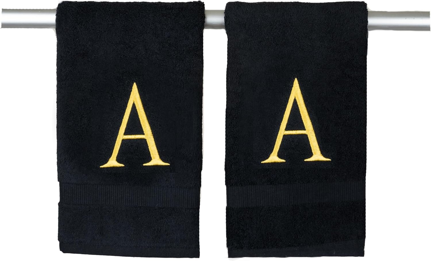 Black Monogrammed Hand Towels for Bathroom- Black and Gold Luxury Hotel Quality Personalized Initial Decorative Embroidered for Powder Room, Spa-GOTS Organic Certified - Pack of 2, Letter A