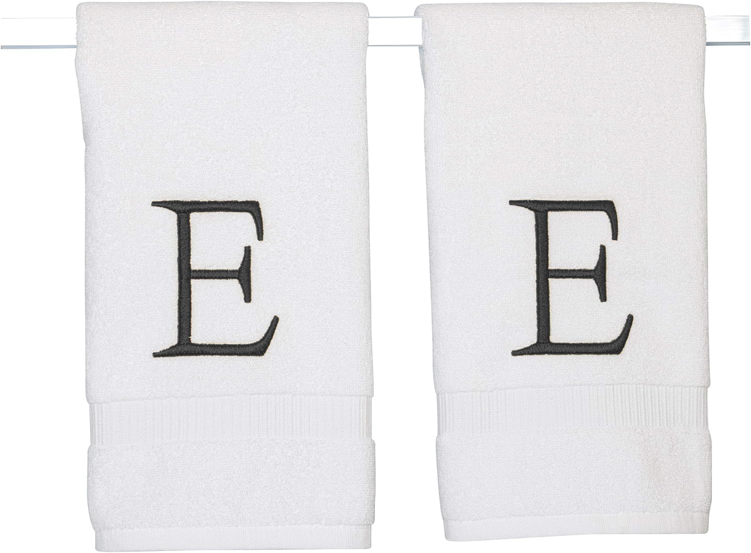 Dark Gray Monogram Hand Towel for Bathroom - Monogrammed Initial Hotel Quality Decorative Embroidered Luxury Towel for Powder Room, Spa - GOTS Organic Certified - Pack of 2, Letter E