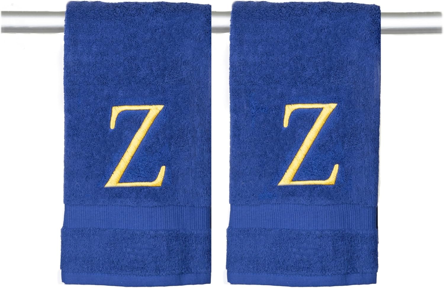 Navy Monogram Hand Towel for Bathroom - Monogrammed Initial Hotel Quality Decorative Embroidered Luxury Towel for Powder Room, Spa - GOTS Organic Certified - Set of 2 Letter Gold Z