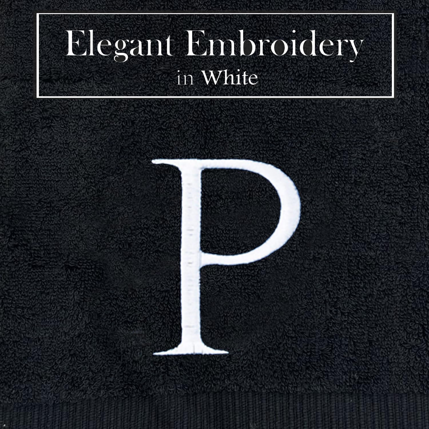 Black Monogrammed Hand Towel for Bathroom - Initial Hotel Quality Decorative Embroidered Luxury Towel for Powder Room, Spa - GOTS Organic Certified - Set of 2 White Letter P