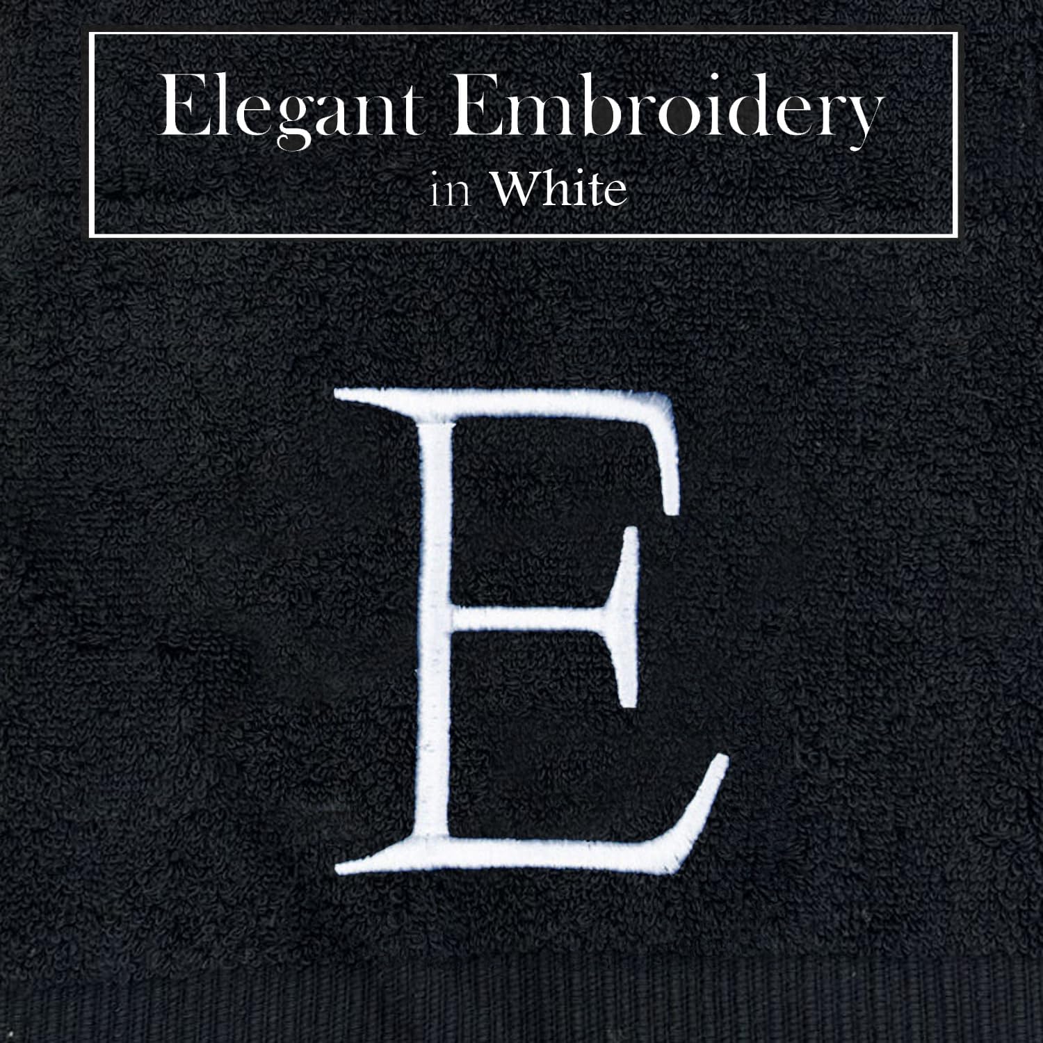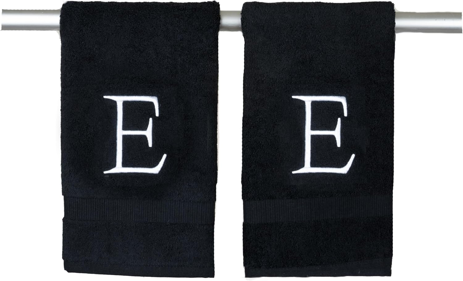Black Monogram Hand Towel for Bathroom - Monogrammed Initial Hotel Quality Decorative Embroidered Luxury Towel for Powder Room, Spa - GOTS Organic Certified - Pack of 2 - Letter E