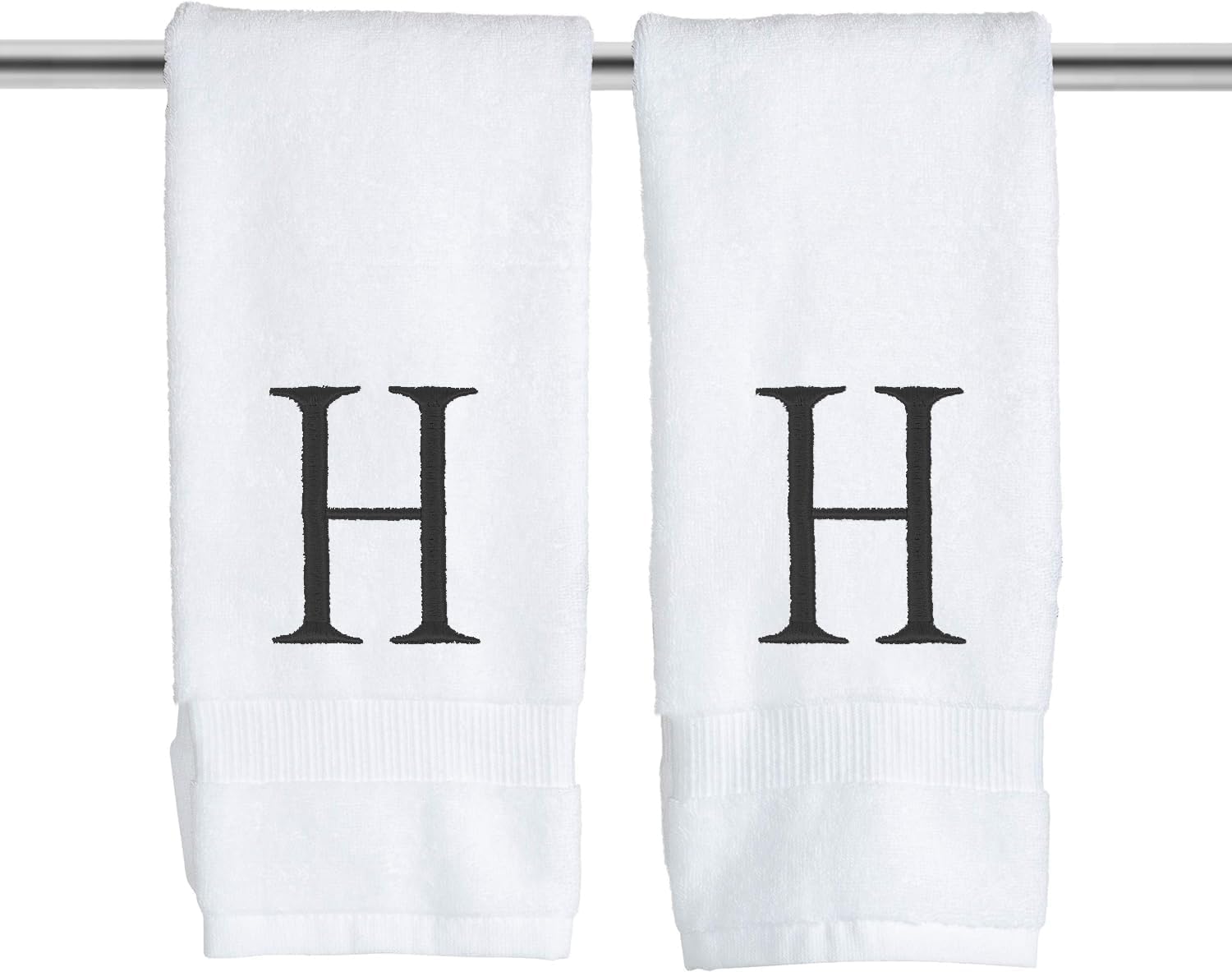 White and Black Monogrammed Hand Towel - Monogram Initial Hotel Quality Decorative Embroidered Luxury Towel for Powder Room, Spa - GOTS Organic Certified - Set of 2 Letter H