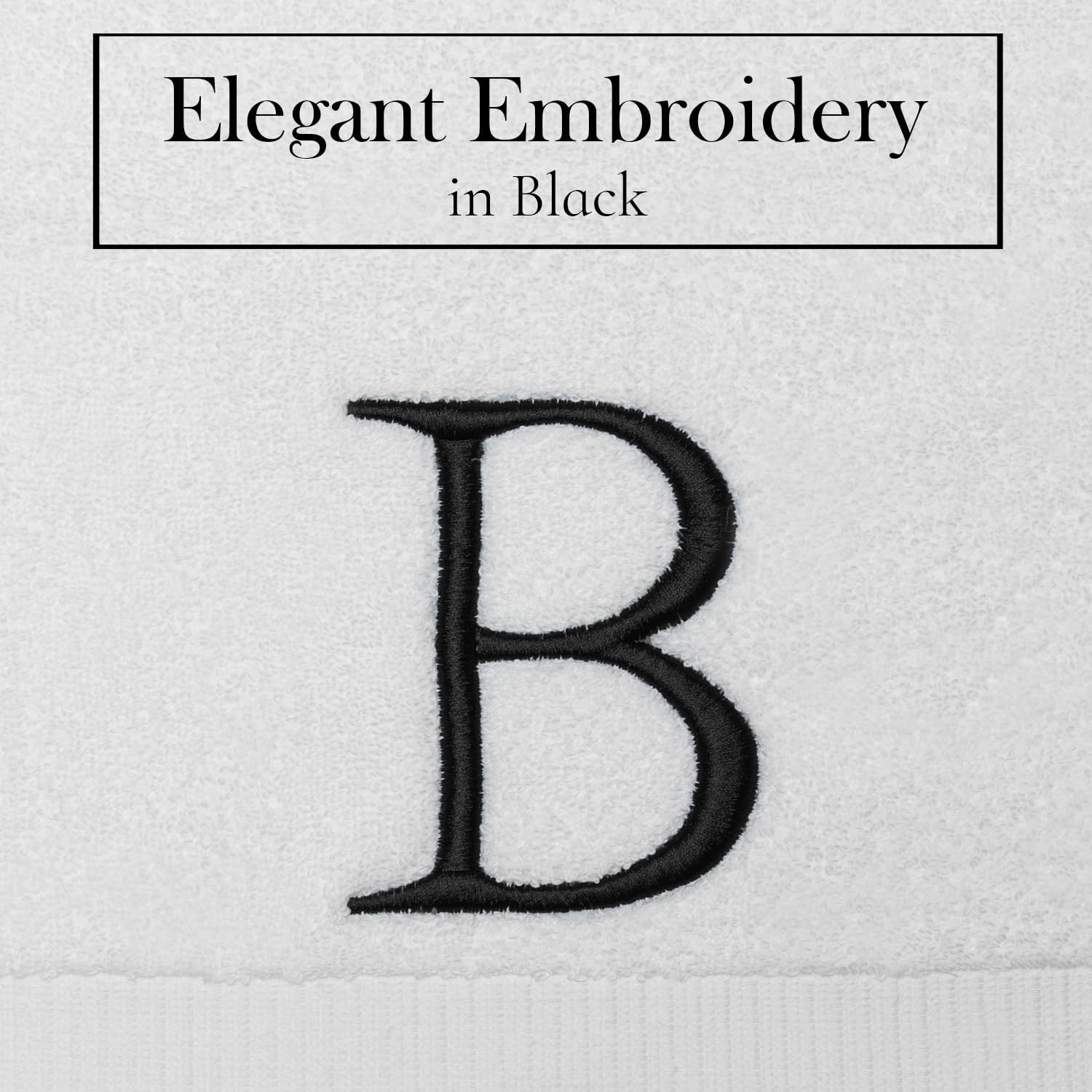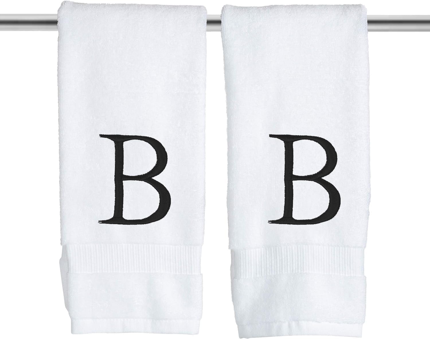Black & White Bathroom Hand Towel - Monogrammed Luxury Hotel Quality Decorative Embroidered Towel for Powder Room, Spa - GOTS Organic Certified - Set of 2 Letter B