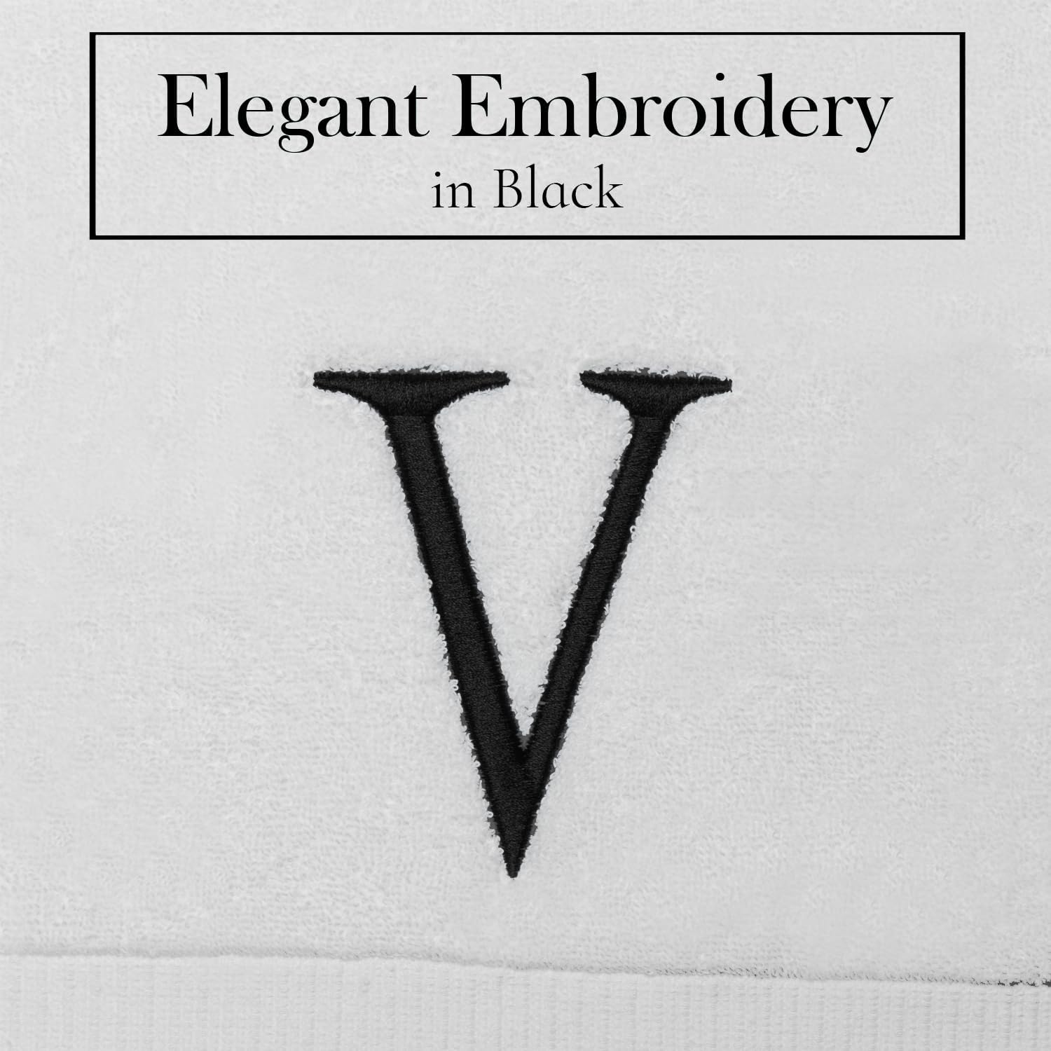 Black Initial Hand Towel for Bathroom - Monogrammed Luxury Hotel Quality Decorative Embroidered Towel for Powder Room, Spa - GOTS Organic Certified - Set of 2 Letter V
