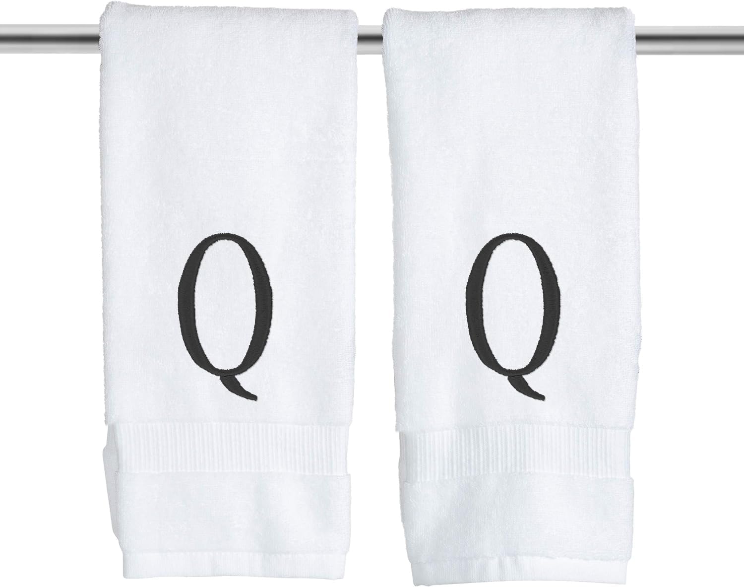 Black Powder Room Hand Towel - Monogram Initial Hotel Quality Decorative Embroidered Luxury Towel for Spa - GOTS Organic Certified - Set of 2 Letter Q