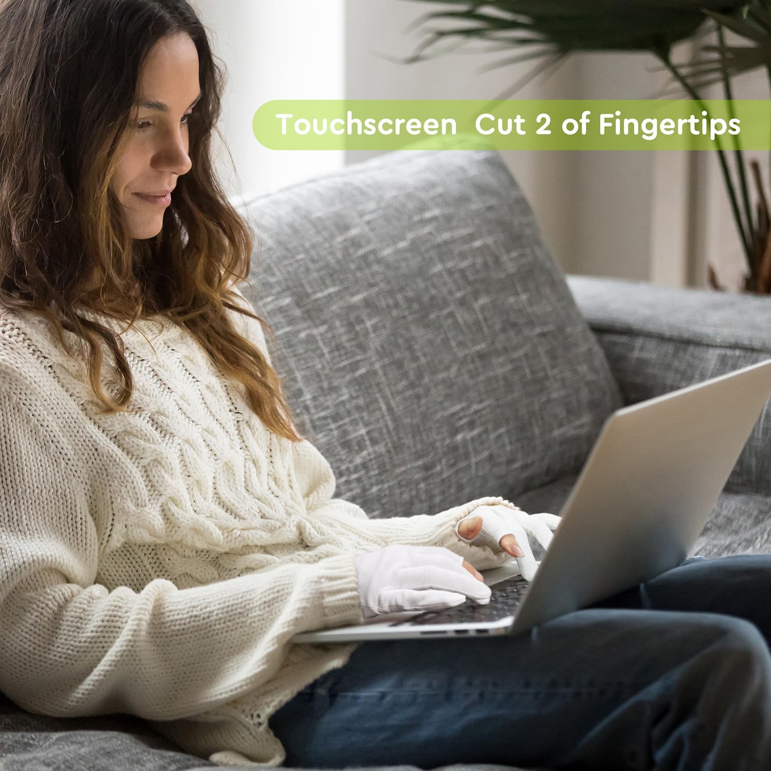 4 Pairs Cotton Moisturizing Gloves Touchscreen - 100% White Cotton Gloves for Dry Hands Eczema Sleeping Overnight Lotion Spa Treatment - Moisturizing Night Gloves