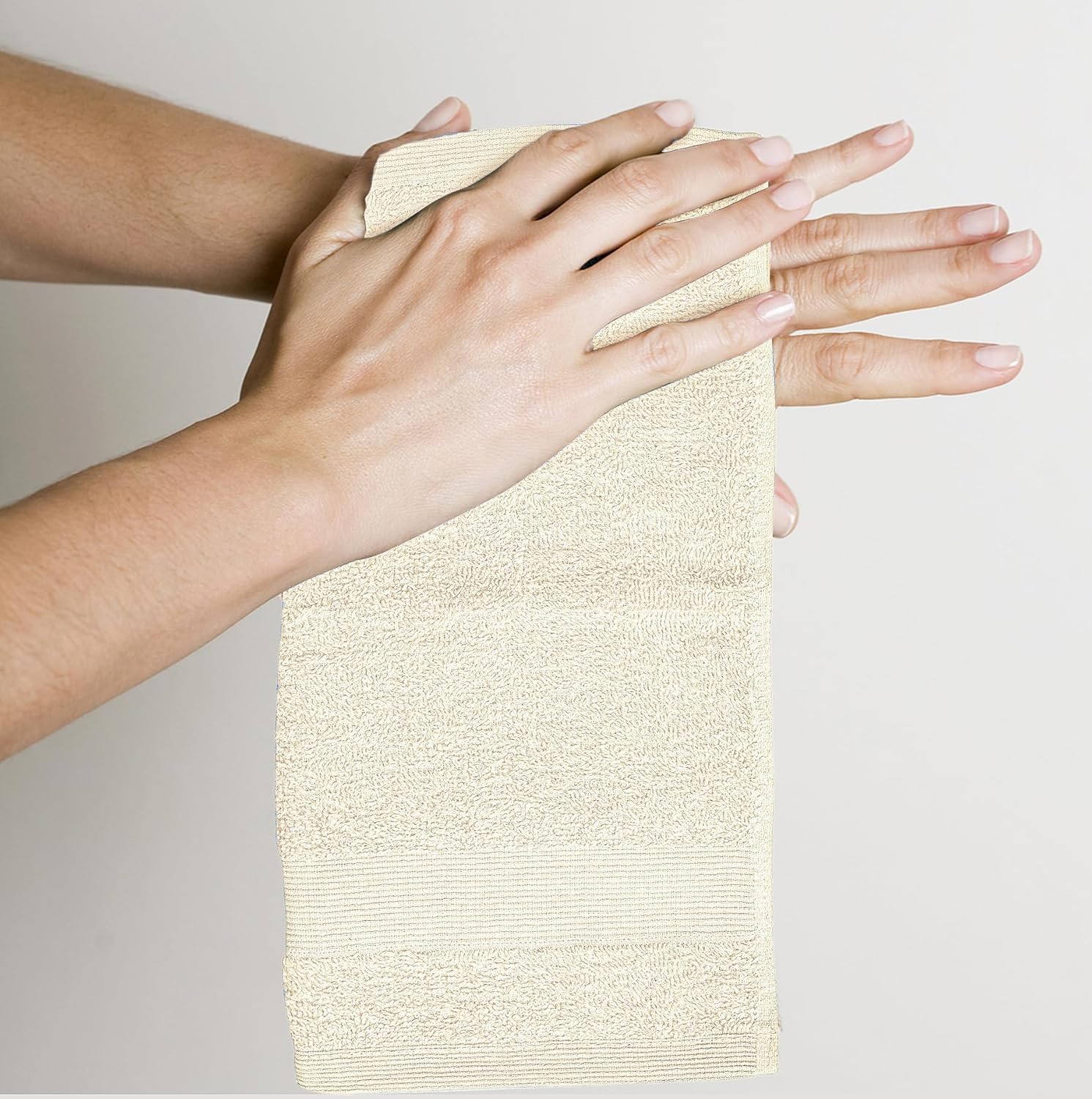 Premium Wash Cloths Pack of 12 (13" x 13") 100% Ring Spun Cotton | Luxury Washcloths | Ultra Soft Face Towels | Highly Absorbent Wash Cloths for face (Cream)