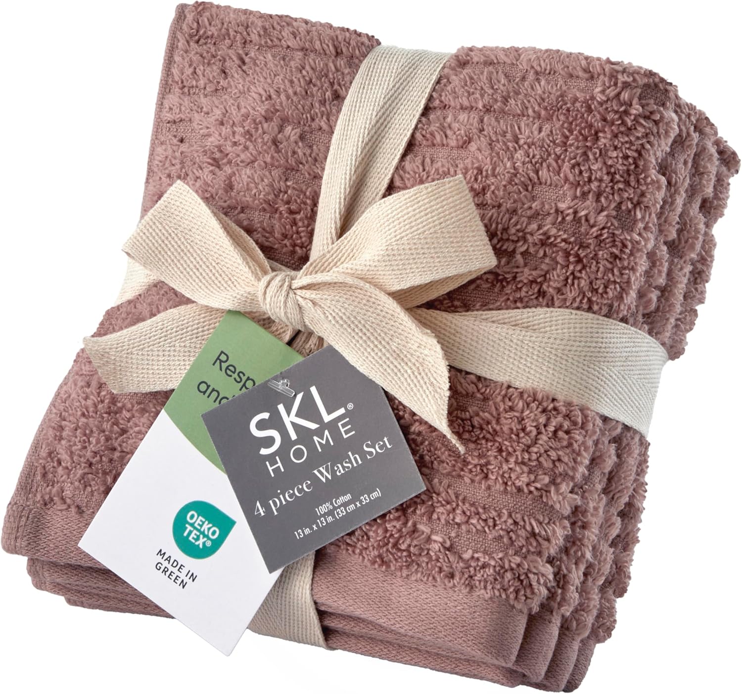SKL Home CloudSoft Cotton Luxury 4-Piece Washcloth Set, Clay