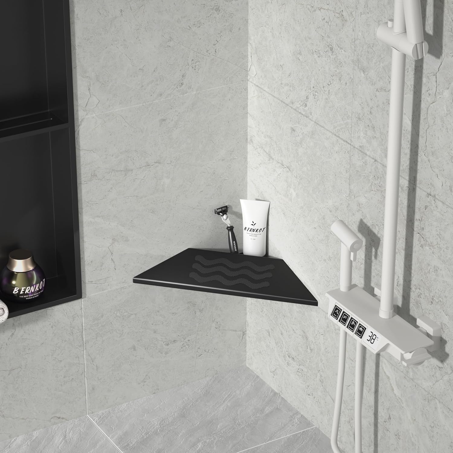 - 【No Water Pooling】Our foot ledge is specifically designed for 90° corners, which is highly space-efficient. It features a porous groove that serves not only for holding a razor and depilatory cream but also enables water to drain away swiftly, thus keeping the holder dry at all times.