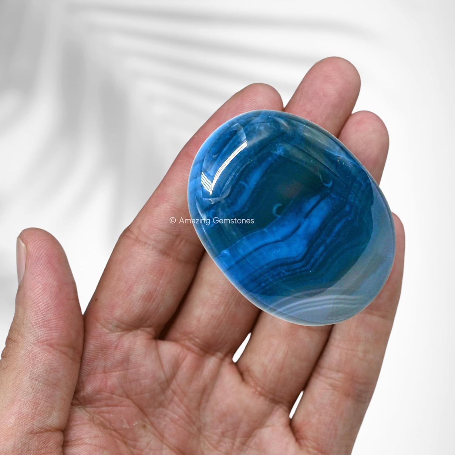 Amazing Gemstone Blue Onyx Crystals and Healing Stones - Large Palm Stone Crystals Piedra - Crystal for Good Luck, Balanced Positive Energy, Meditation - Unique Stocking Stuffers Gifts for Women, Men