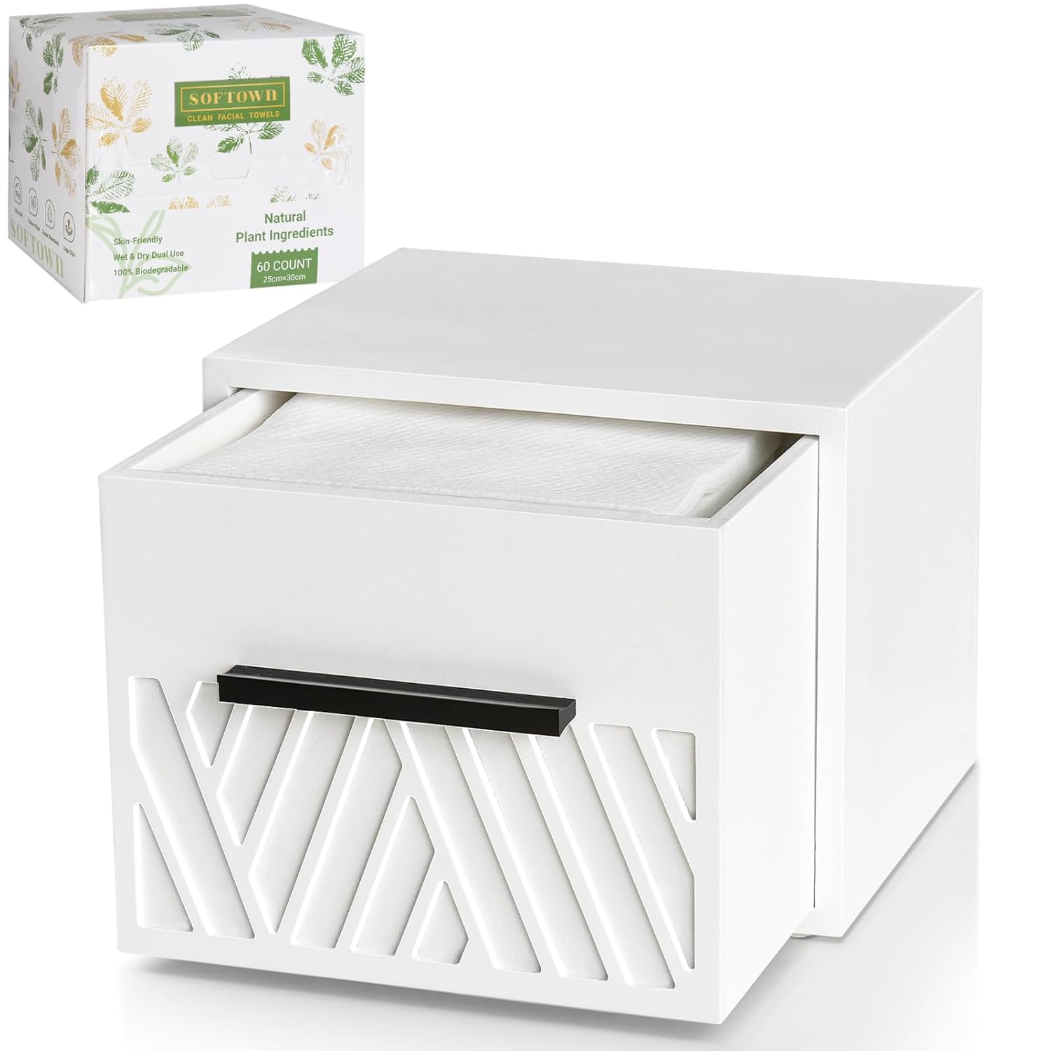 - 【Comes with Multifunctional Wooden Storage Box】We thoughtfully equip disposable face towels with a luxe wooden storage drawer, which can neatly store disposable towels to protect them from dust and moisture. The wooden storage box is equipped with exquisite carvings and can be used as a decorative storage box to store your bathroom supplies like makeup remover pads or swabs, adding a touch of elegance to your daily skin care. At the same time, the drawer has anti-slip handles for easy access