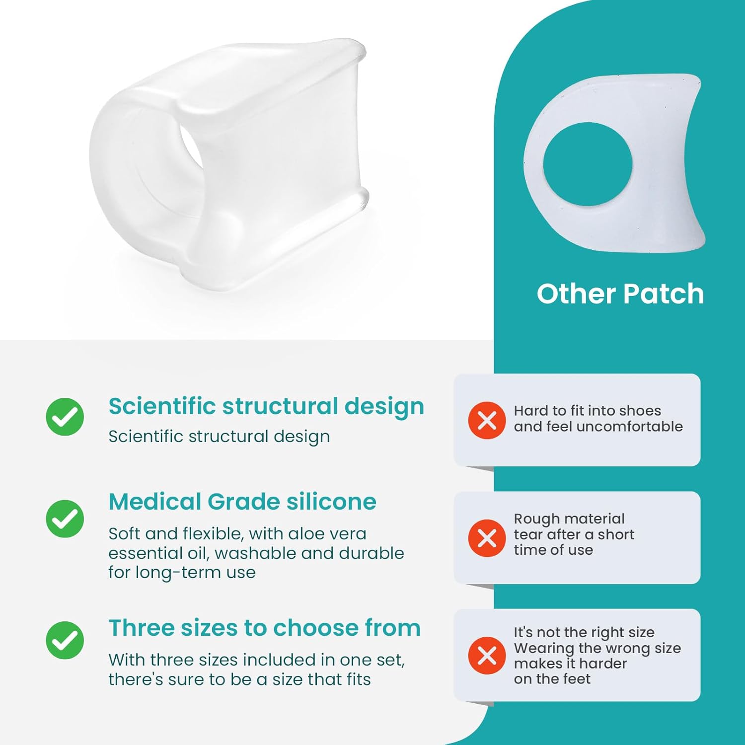 - Multiple Sizes Available: Everyone's feet are different, which is why our Toe straighteners are designed to be available in multiple sizes. You can choose the size that best fits your feet so that the product fits your toes perfectly. This ensures that you get the most comfortable experience