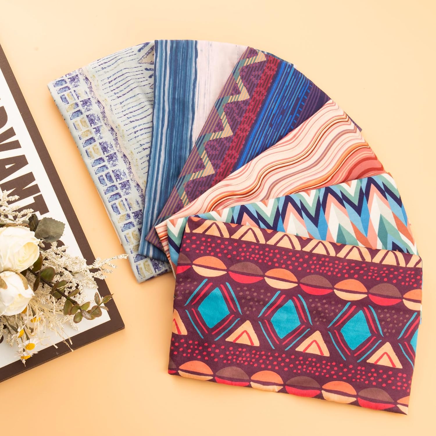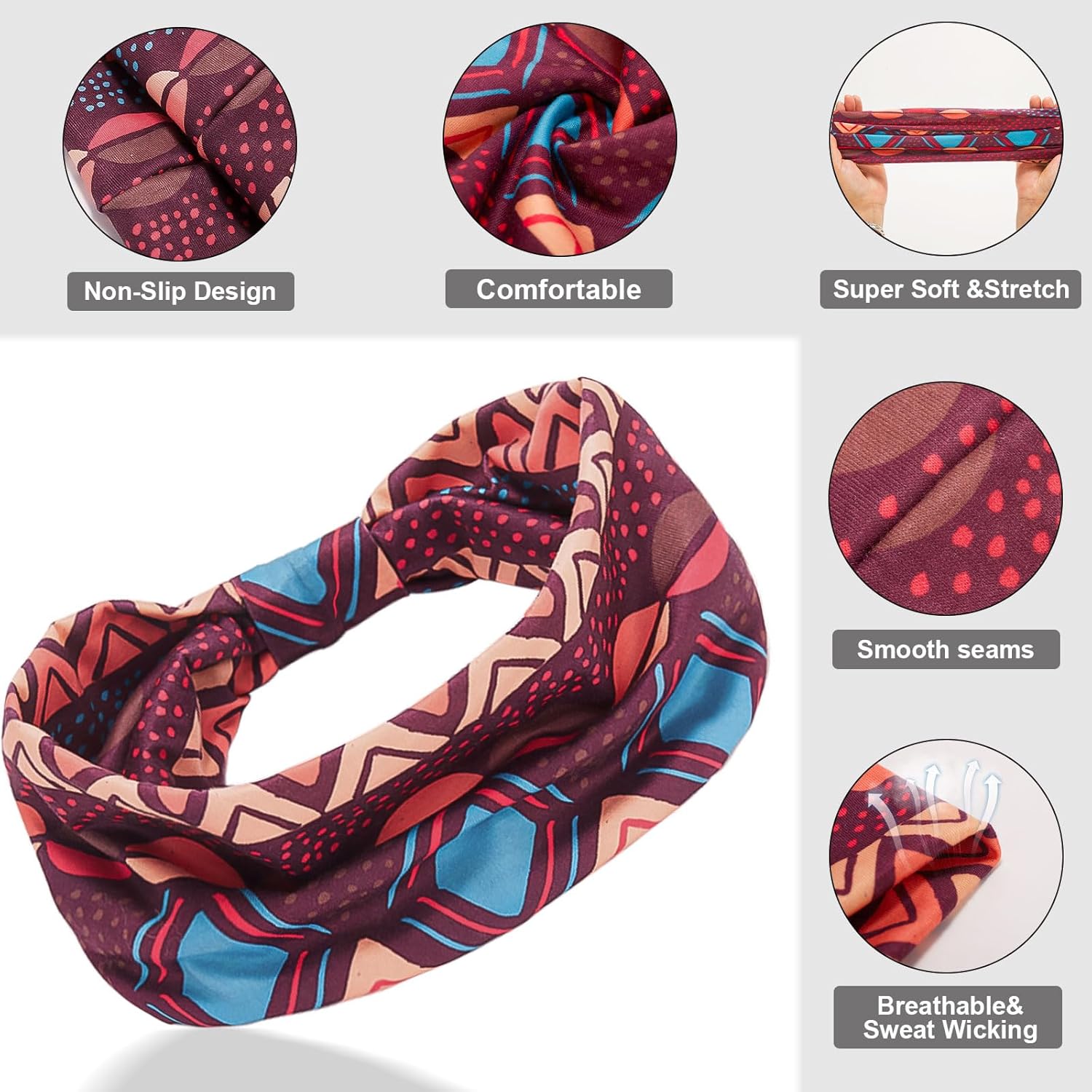 Cobahom 6Pcs Wide Headbands for Women Non Slip Soft Fabric Hair Wrap Boho Head Bands Elastic Sport Hair Bands for Workout Yoga Running (Geometric Elements)