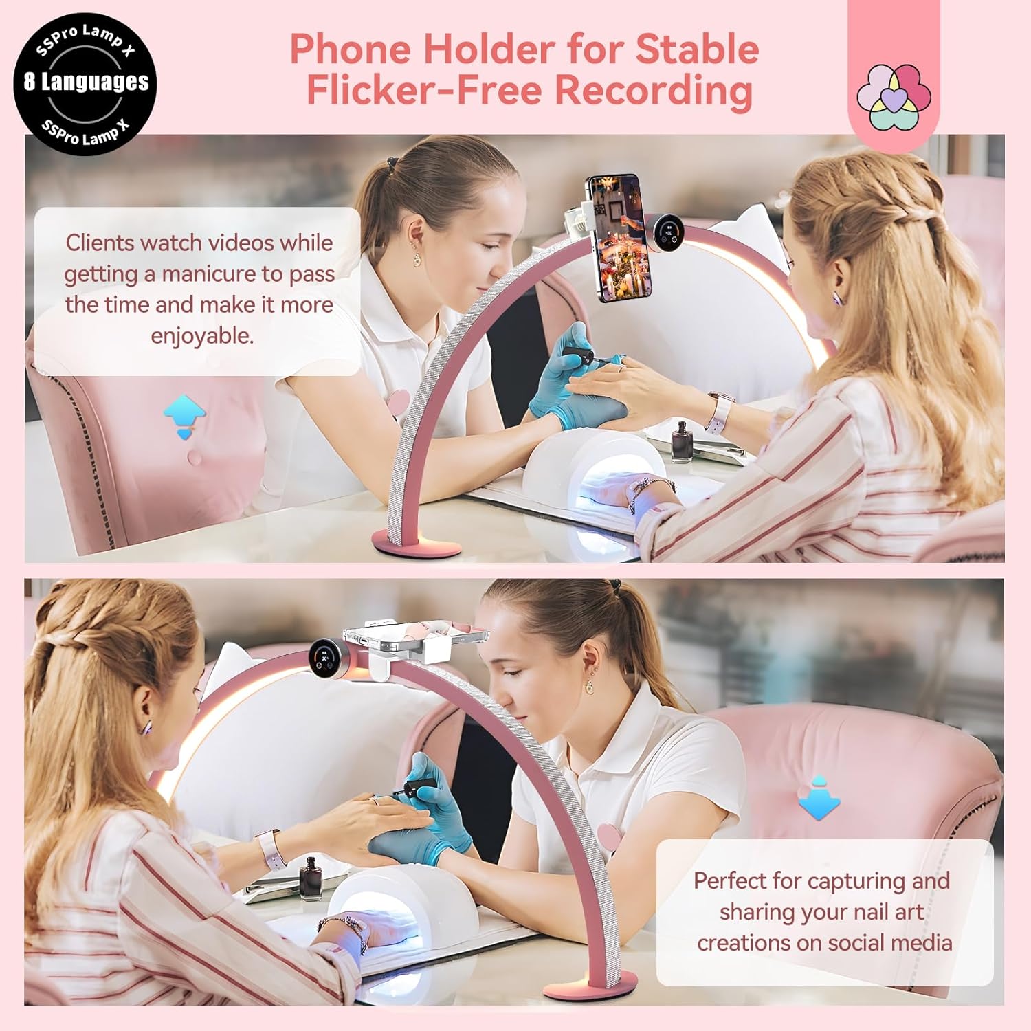 - Phone Holder for Easy Recording: The stylish crystal diamond design includes a sturdy phone holder, ensuring flicker-free and glare-free recordings of your nail art. Perfect for capturing and sharing your creations on social media