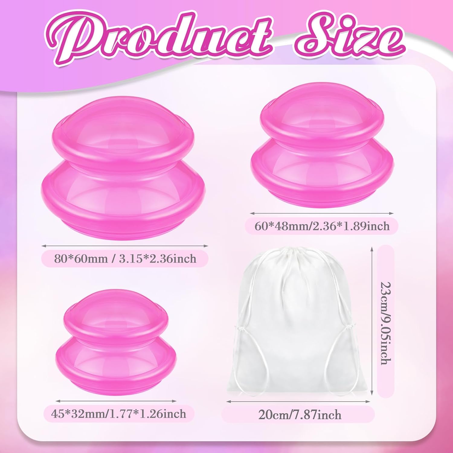 - Varied Sizes and Multipurpose Use: this silicone cups come in a variety of sizes to suitably match your needs; Large cups measure 3.15 x 2.36 inches, medium 2.36 x 1.89 inches, and small 1.77 x 1.26 inches; Whether your aching body needs to relieve pain on your shoulders, back, waist, arms, or legs, this massage cupping set has got you covered; Made of durable material and featuring a rose red color, our products are designed for a wide range of applications