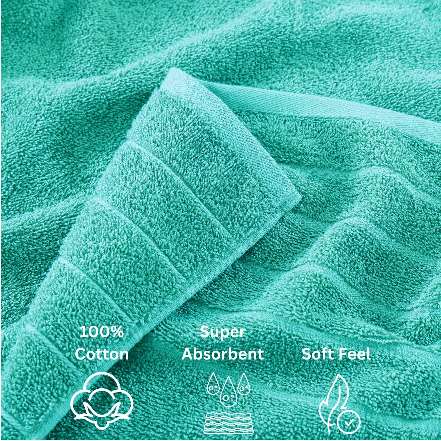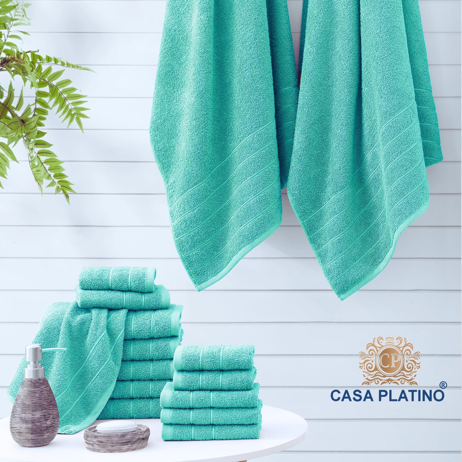 Casa Platino 100% Cotton Towels for Bathroom – 24 Pc Set – Quick Dry, Soft & Absorbent Ring Spun Terry Fabric, Full Set for Family & Guests, Hotel Feel Everyday – Aqua Sky