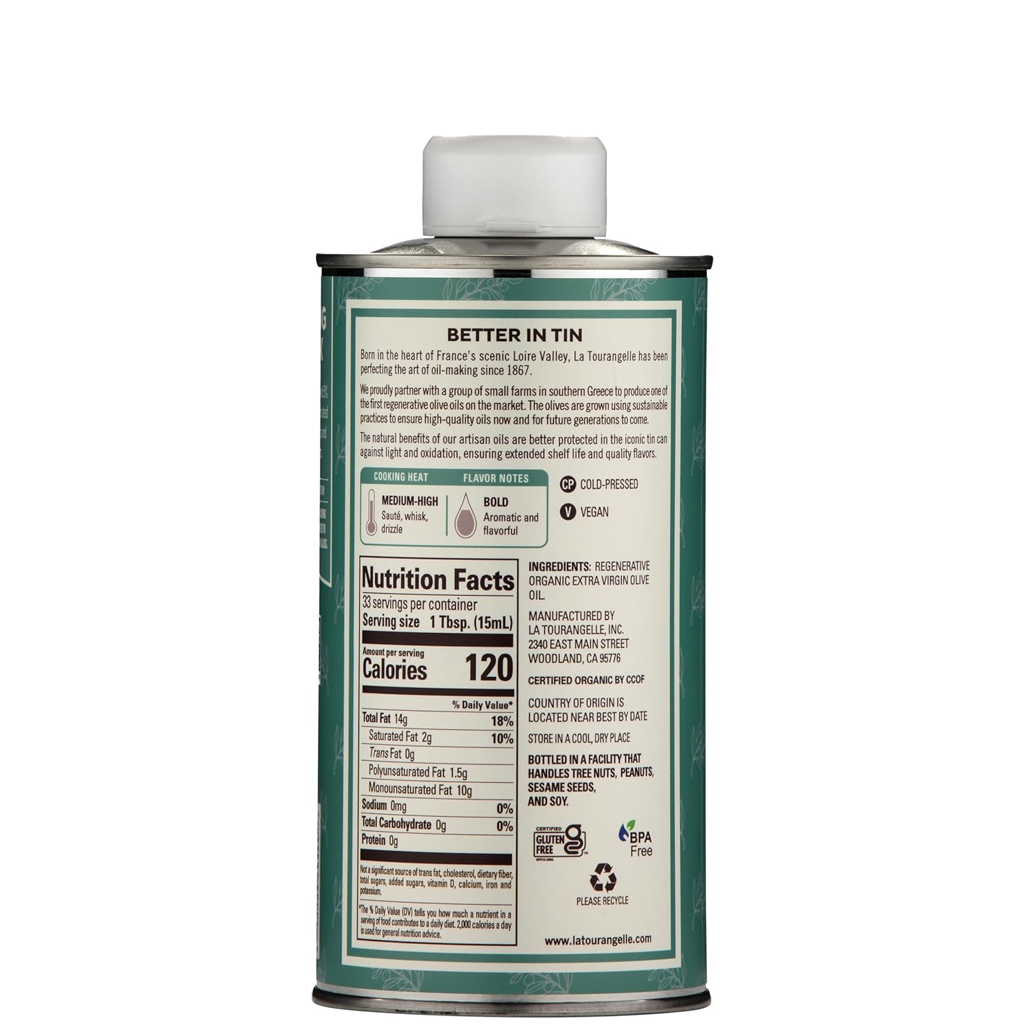 La Tourangelle Regenerative Organic Extra Virgin Olive Oil, Cold-Pressed High Antioxidant Olives, Sustainable, 16.9 Fl Oz