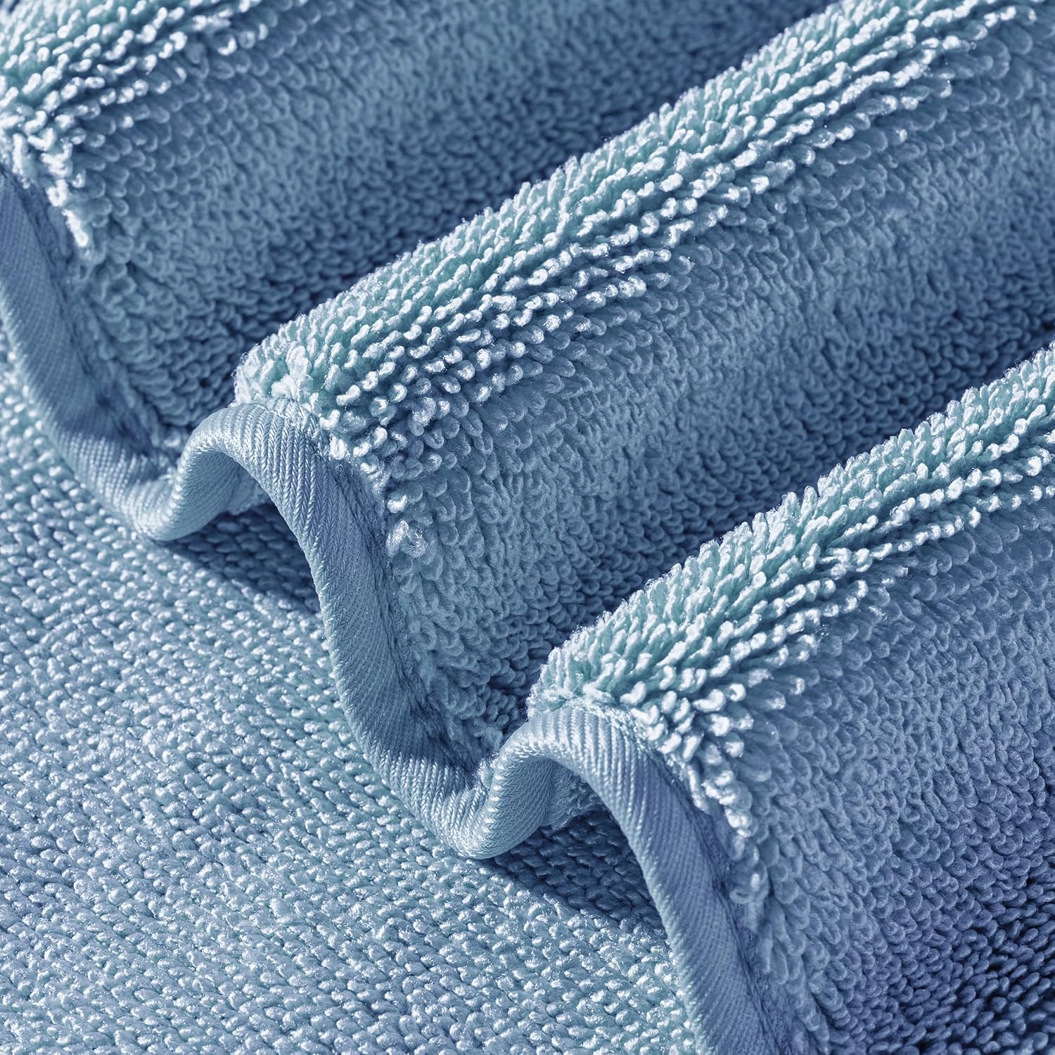 - Experience the super soft feeling of our premium microfiber against your skin without the heft and bulk; our terry twist loop fabric is thicker than other microfiber bath towels with a much improved hand feel