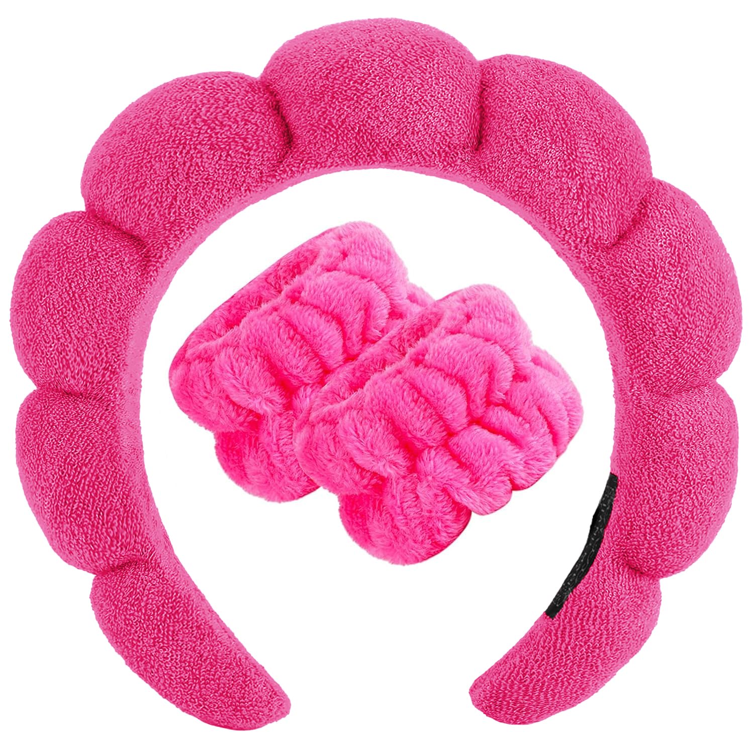 Zkptops Spa Headband for Women Sponge Makeup Skincare Headband Washing Face Wristband Set Terry Cloth Bubble Soft Get Ready Hairband Puffy Padded Headwear Non Slip Thick Hair Accessory(Hot Pink-2)