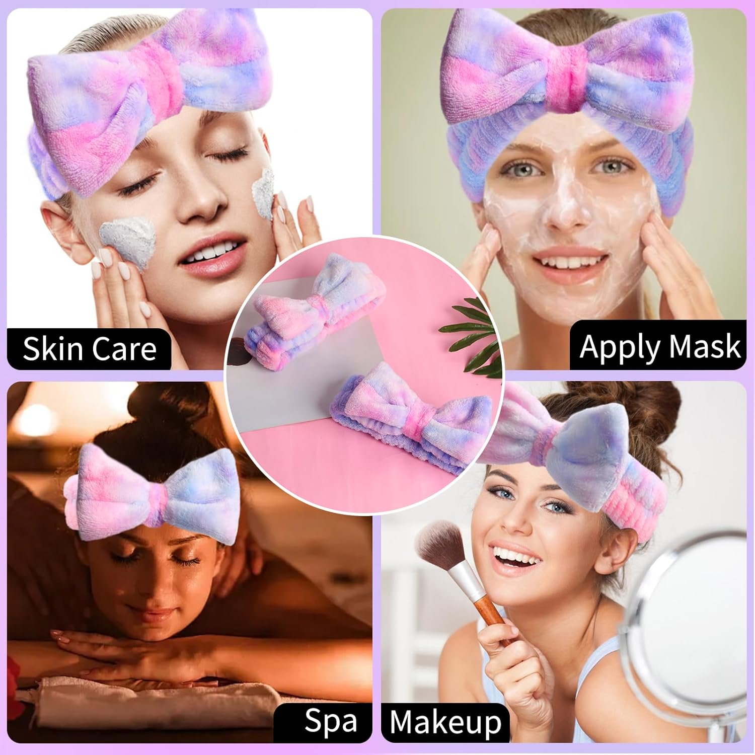- 2Pcs spa headbands for washing face: 2 pieces of face wash headbands for keeps hair out of her face, available in 2 different bright pink purple tie dye colors combined with fluffy texture, give you wonderful wear experience. Nice combination in daily life, and also a creative gift choice for girl, friend, mother, etc.