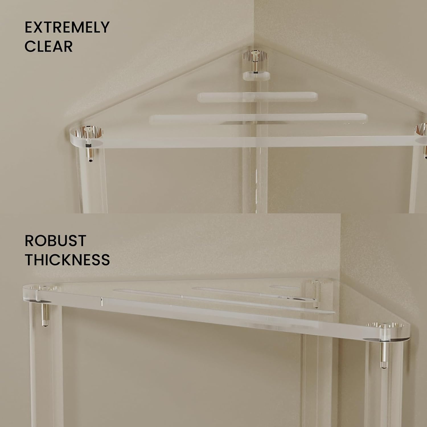 - 【TRANSPARENT DESIGN FOR ACRYLIC CORNER SHOWER STOOL】 - Introducing a sleek and transparent design with our clear acrylic corner shower seat. The see-through effect not only captivates the eye but also brings a sense of elegance and functionality to the shower space.
