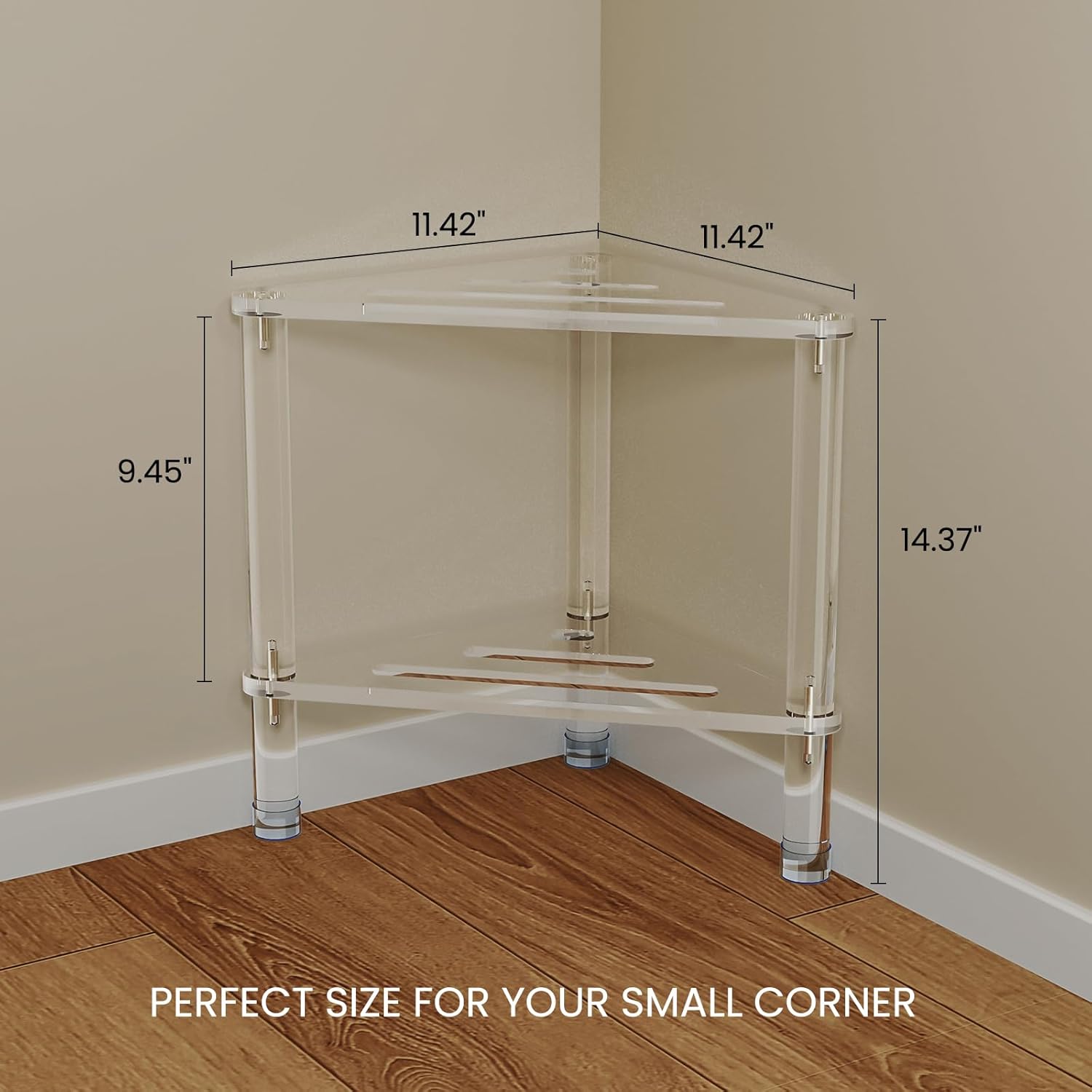 Acrylic Corner Shower Stool for Shaving Legs 11.42" D X 11.42" W X 14.37" H, Triangle Shower Foot Rest with Storage Shelf, Heavy Duty, for Inside Shower,