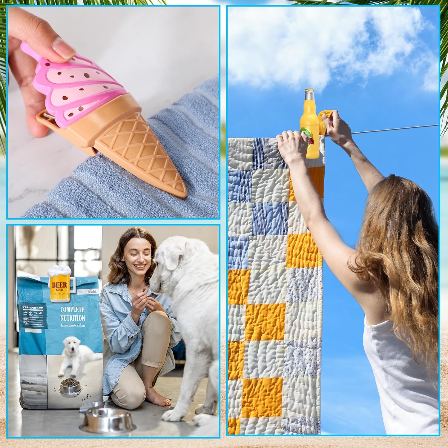 - Vibrant and Funny: these beach towel clips adopt beer mug, lemon glasses, cocktail glasses, wine bottle, ice cream and parrot styles, look vibrant and funny, you can use them to clip cloths, towels or bedding