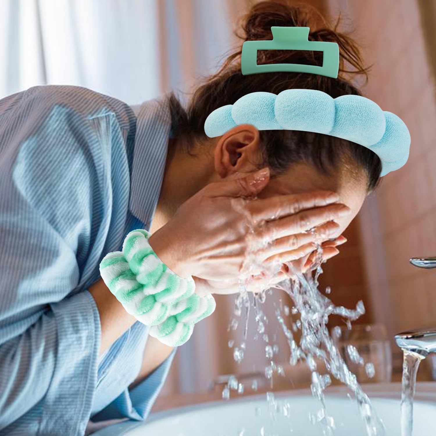 - Water Absorption & Stretchy - Wrist bands can prevent water from spreading to your arms and keep your hair dry. The face wash headband has a great elasticity, suitable for most people's head and wrist circumferences.