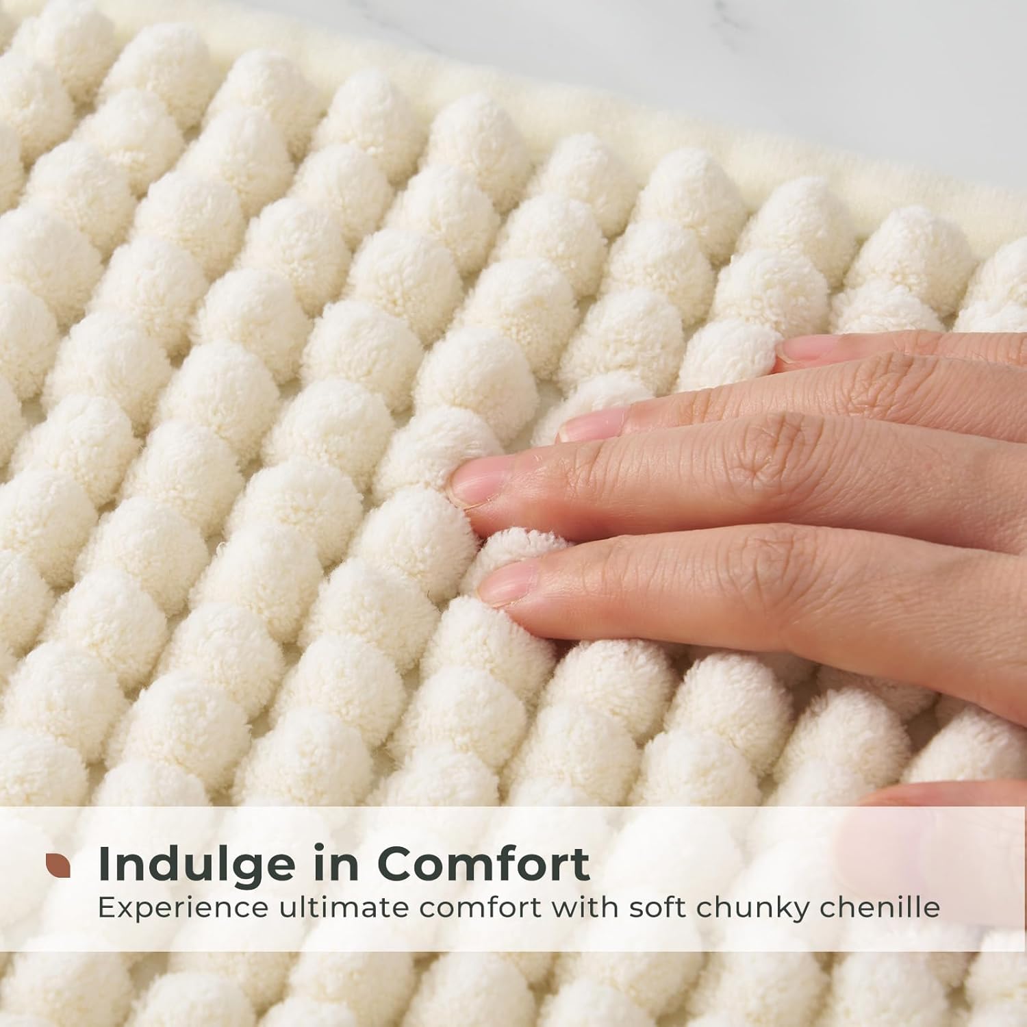 FRESHMINT Thick Chunky Chenille Bathroom Rug 17"x24", Non Slip Bath Mat, Soft Bathroom Decor, Cute Shower Mat, Water Absorbent, Washable, Cream White