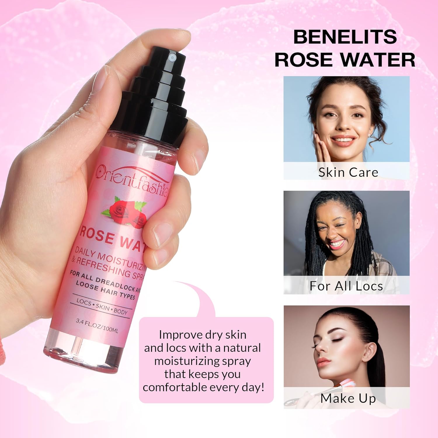 Orientfashion Moisturizing Refreshing Spray for Locs - Rose Water and Peppermint Hair Scalp Moisturizer Natural Loc Care and Maintenance (Rose, 3.4 Fl oz)