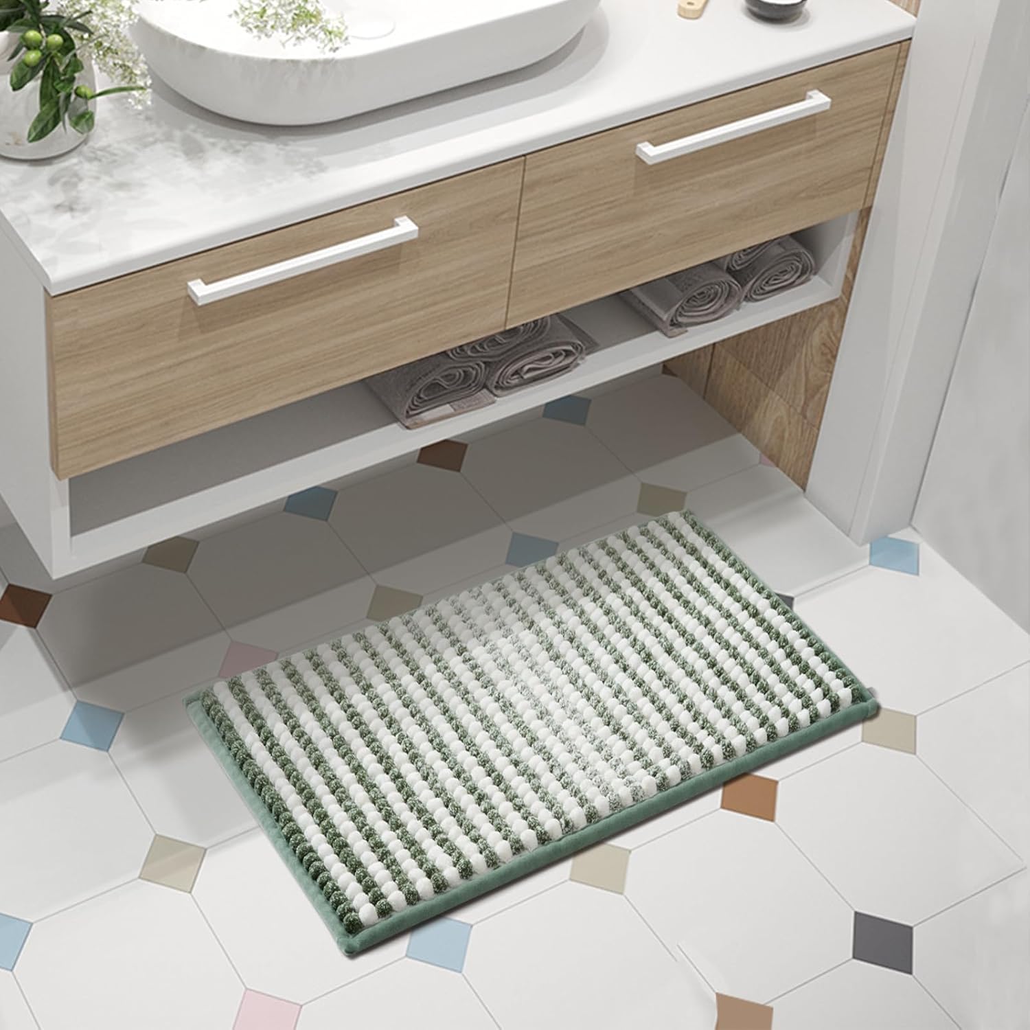 FRESHMINT Chunky Ombre Chenille Bathroom Rug 17"x24", Small Water Absorbent Soft Bath Rugs for Bathroom Floor, Thick Non Slip Bath Mat Washable Quick Dry Shower Mats, Sage Green and White