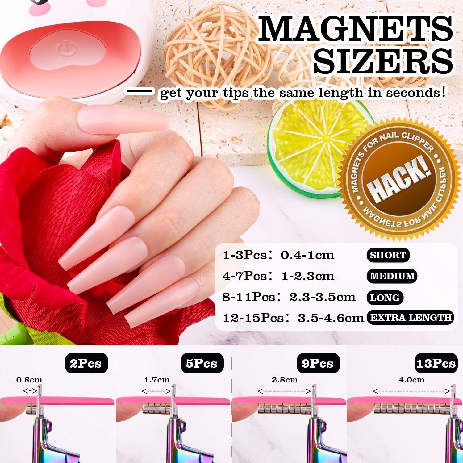 - Powerful Magnet Sizers -- Easiest nail hack to get your tips the same length in seconds!Our magnets have a total length of 1.6 inches, the height of each pcs is 0.11 inches, you can adjust the desirable length by using different numbers of magnets.If you are worried that the magnets will move, you can fix the first magnet with glue on the clipper