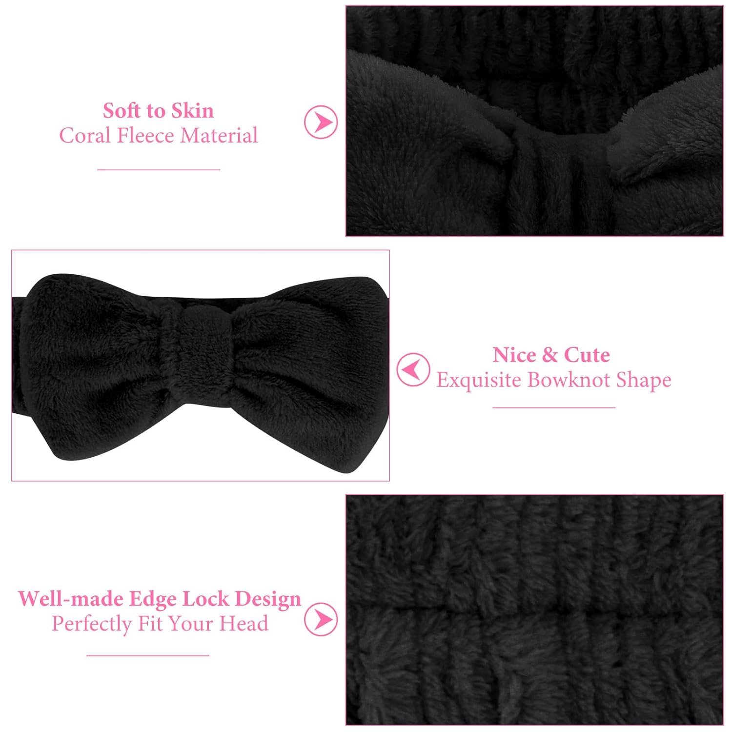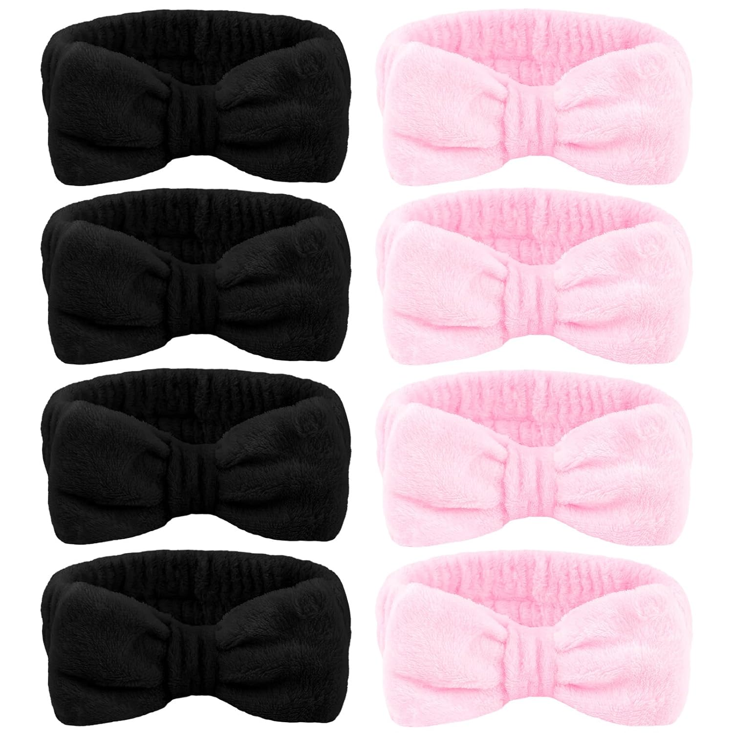 - Durable: These skin care headbands bulk including 4 pcs pink spa head bands and 4 pcs black spa headbands. Cute bow design, you can sharing these headband with your sisters, family and friends. pink spa headbands are the necessary hair accessories for spa party & bachelorette party.