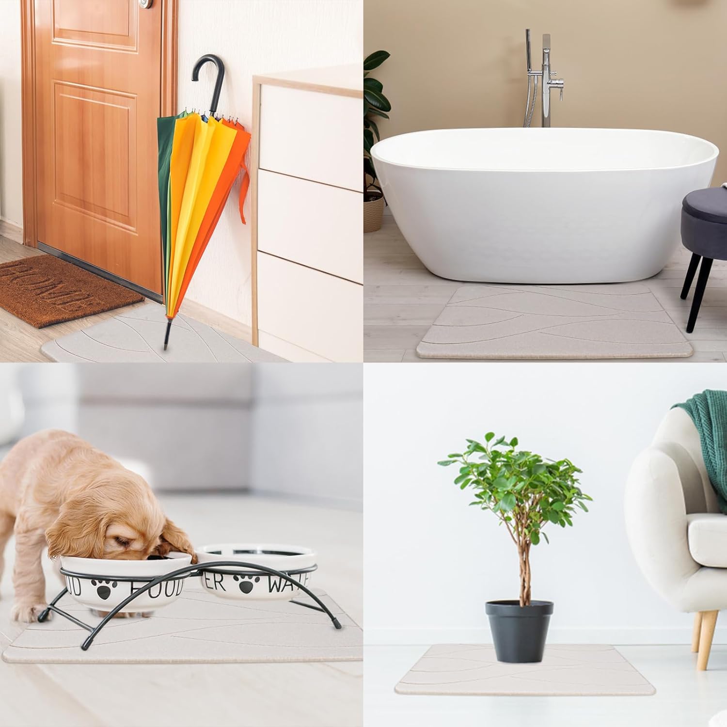- Multifunctional Drying Mat: Water absorbing bath mat can be used for bathroom, bathtub, kitchen counter, kitchenware drains, pet bowl, swimming pool, flower pot, mudroom and anywhere you need to keep it dry and clean