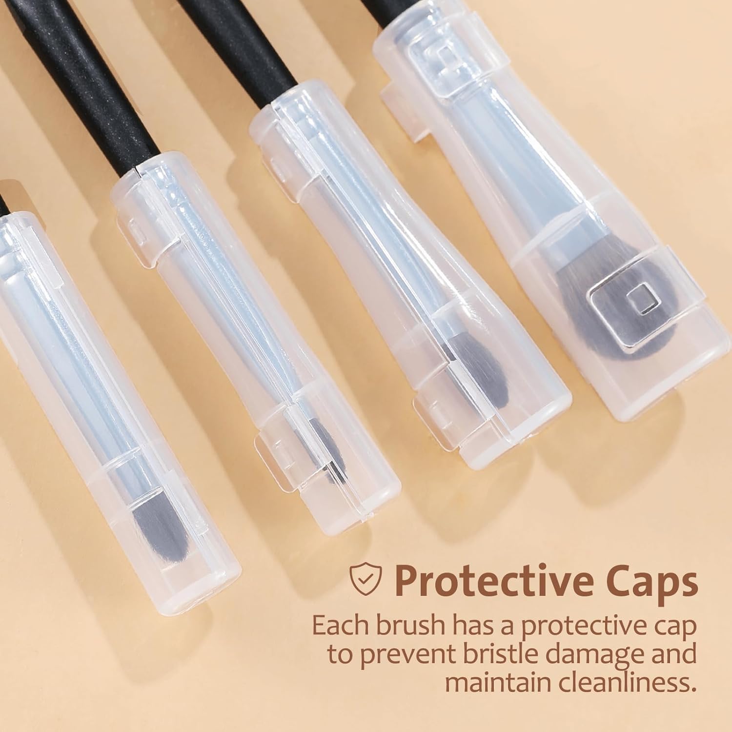 - Protective Travel Dust Covers Included: Each brush comes with a custom-fit dust cover to keep bristles clean, protected, and in shape. Perfect for travel, makeup pouches, or hygienic daily storage. No more crushed brushes or dirty bristles—just clean, ready-to-use tools every time.Simply snap on the cap to protect your investment and keep brushes clean in your makeup bag.