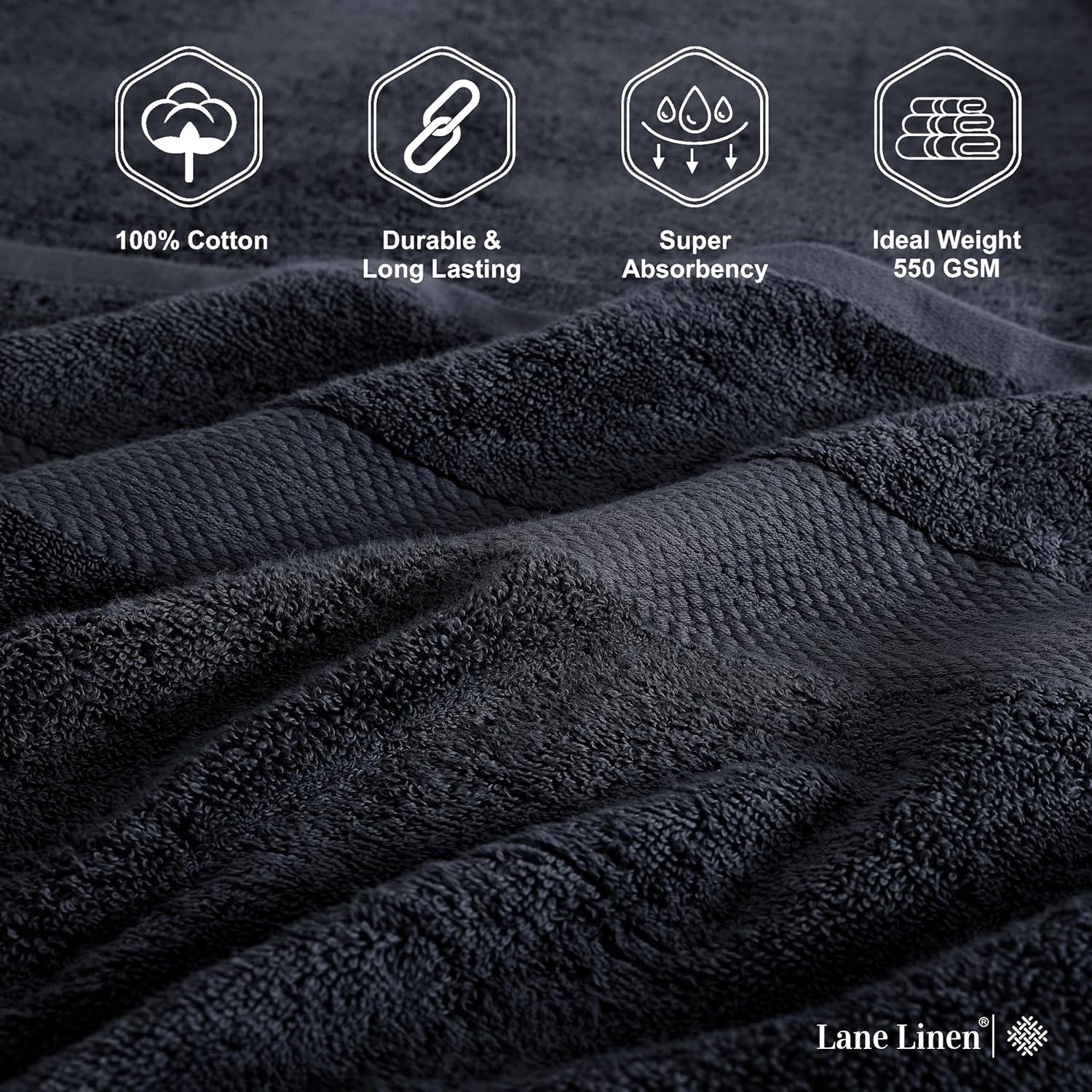 LANE LINEN 100% Cotton Bath Towels 4 Pack (28"x54") - Ring Spun Mercerized Cotton Large Towel Set for Bathroom - Quick Dry, Soft & Absorbent Large Bath Towel Set - Oeko Tex Certified - Black Towels