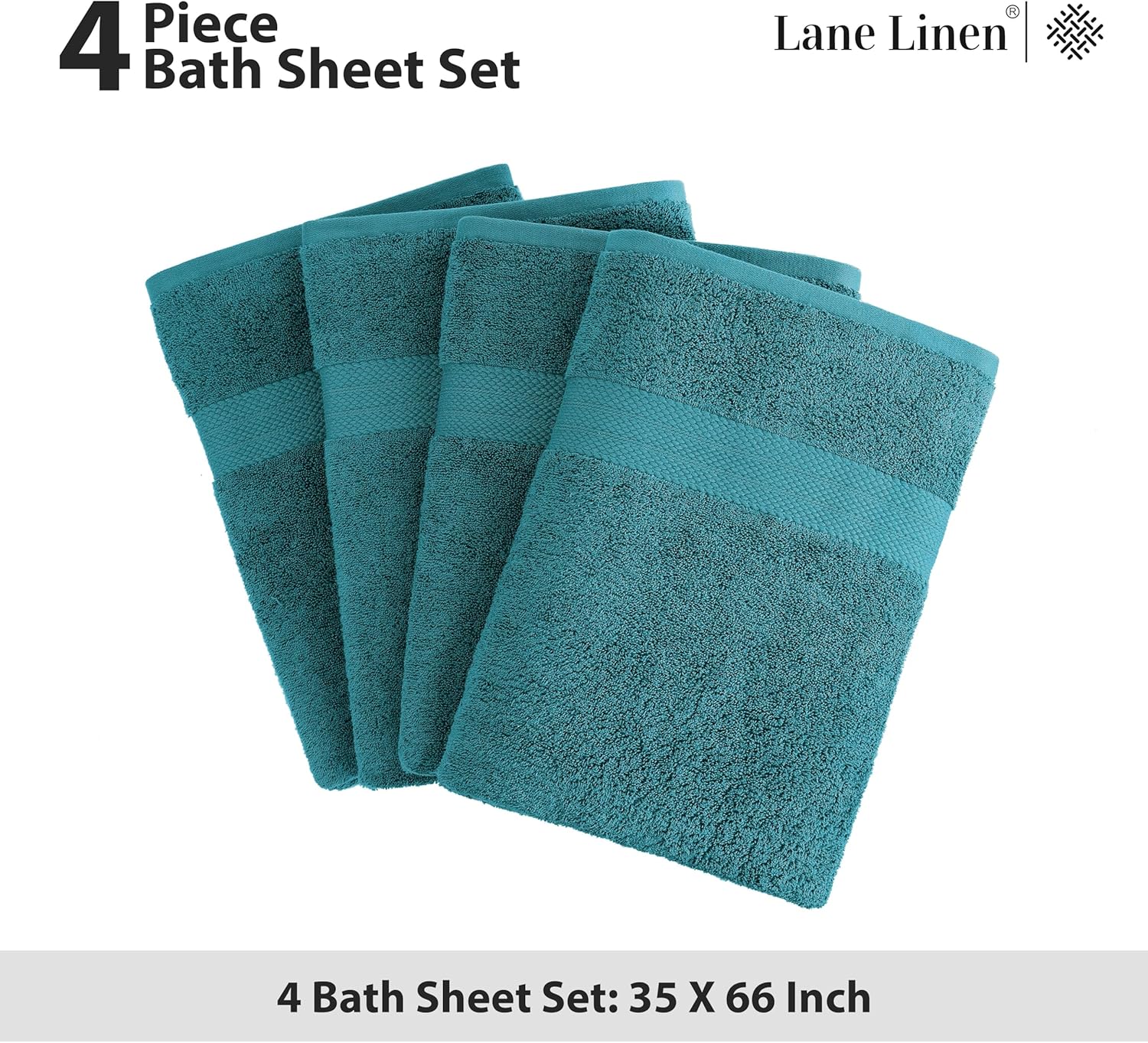 LANE LINEN 100% Ring Spun Cotton Bath Sheets (35"x66") - 4 Pcs - Extra Large Bath Towel Set - Quick Drying, Soft & Absorbent Oversized Bathroom Towels - Remain Soft After Multiple Washes - Sea Port