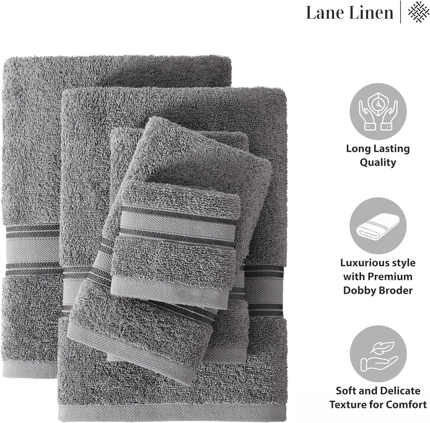 LANE LINEN Luxury Bath Towels Set - 12 Piece, 100% Cotton, Zero Twist, Super Soft & Absorbent, Includes 4 Bath Towels, 4 Hand Towels, 4 Washcloths - Cool Grey