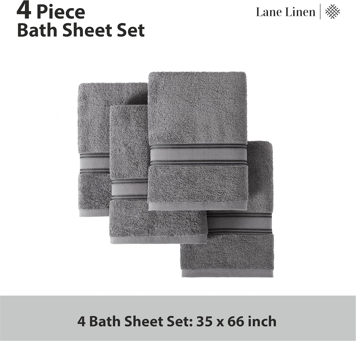LANE LINEN 100% Cotton 4 Pack Bath Sheets (35"x66") - Zero Twist, Extra Large Cotton Bath Towels Set - Quick Dry, Soft & Absorbent Oversized Towel Set - Remains Soft After Multiple Washes - Cool Grey