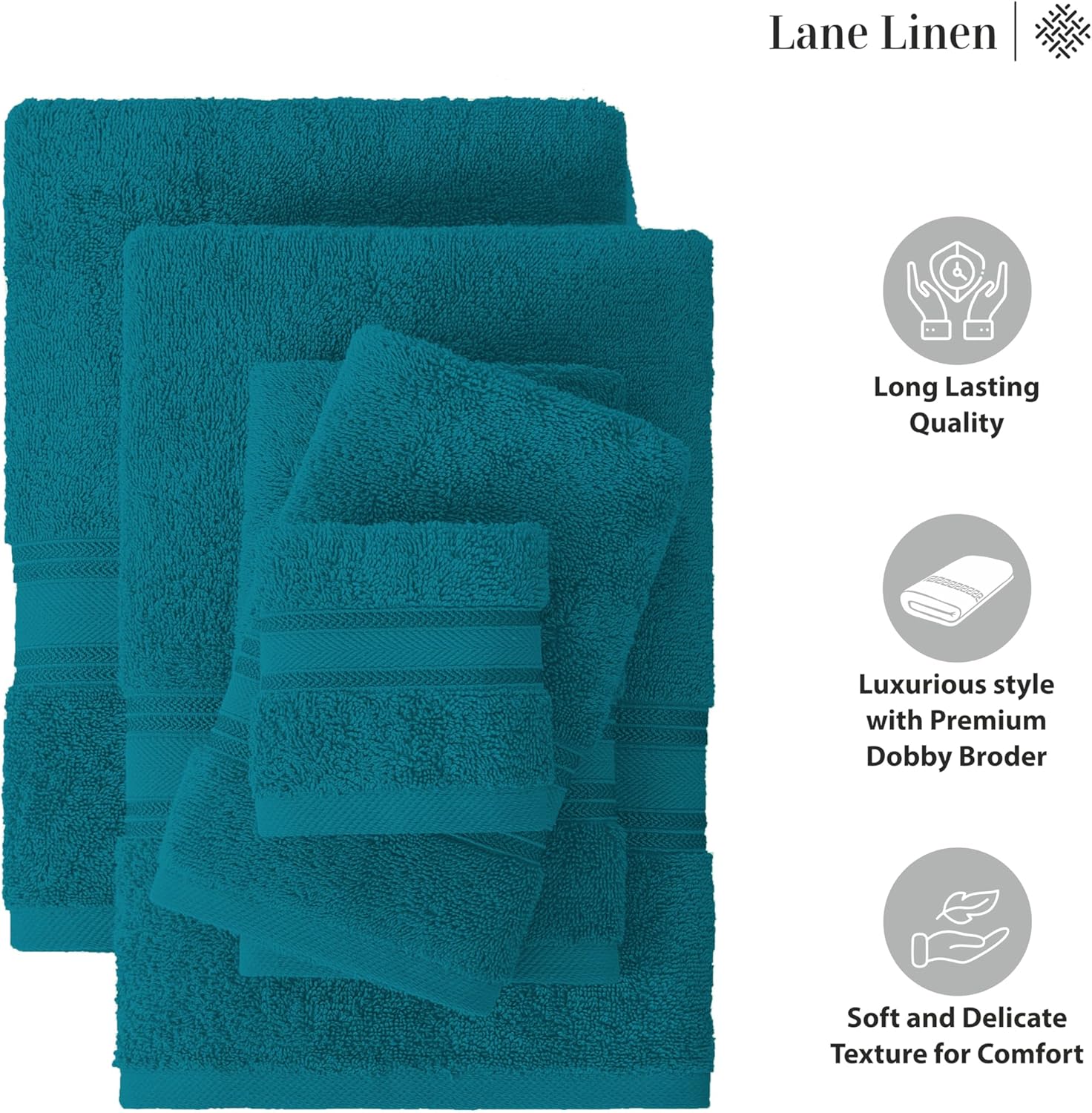 LANE LINEN Luxury 6-Piece Bath Towel Set - 100% Cotton, Quick-Dry, Super Absorbent, Zero Twist - Includes 2 Bath Towels, 2 Hand Towels, 2 Washcloths - Sea Port
