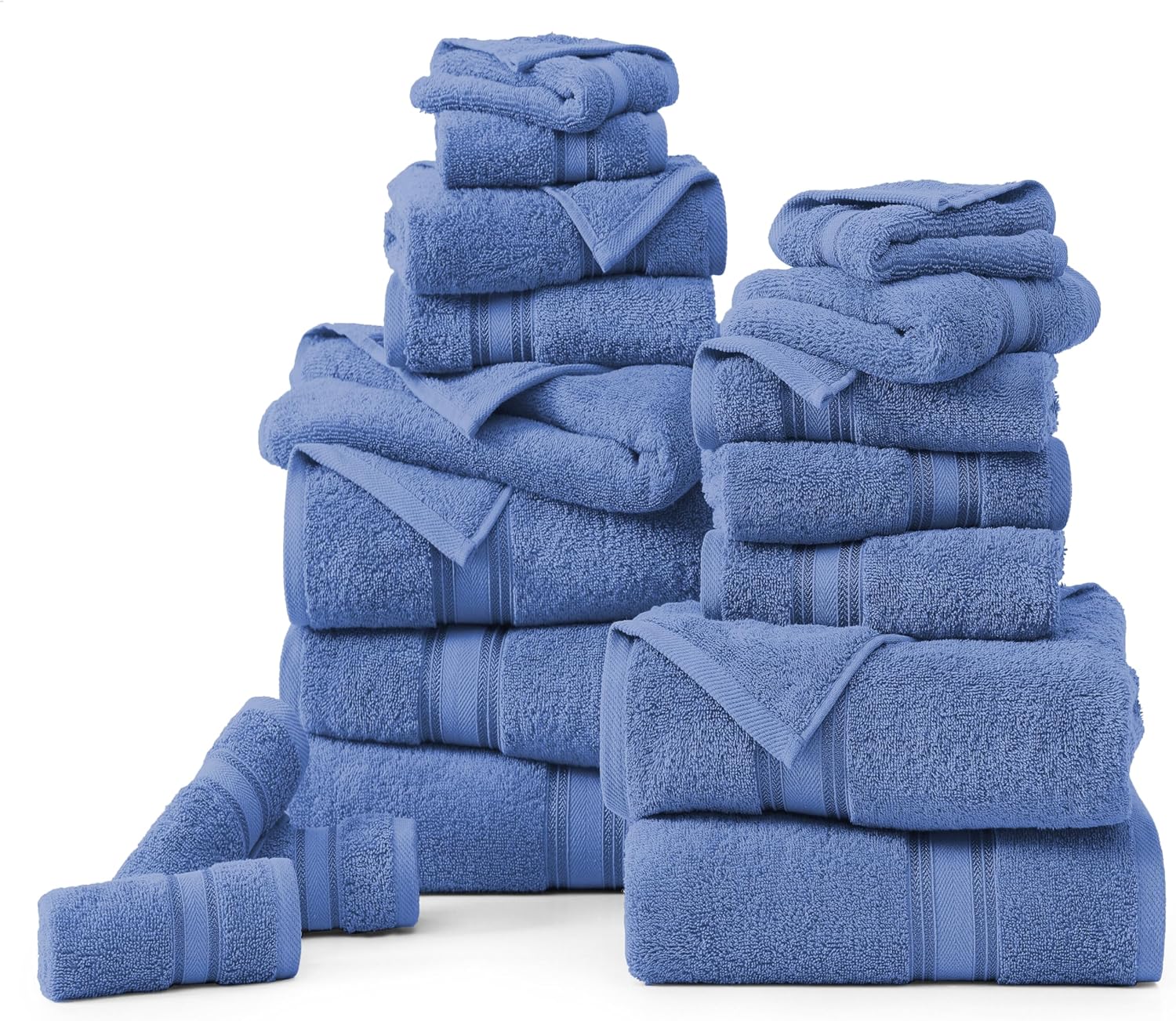 LANE LINEN 100% Cotton Luxury Bath Towel Set - 18 Pieces - Zero Twist, Quick Dry, Super Soft & Highly Absorbent - 6 Bath, 6 Washcloths, 6 Hand Towels for Bathroom - Pre Shrunk - Cerulean Blue