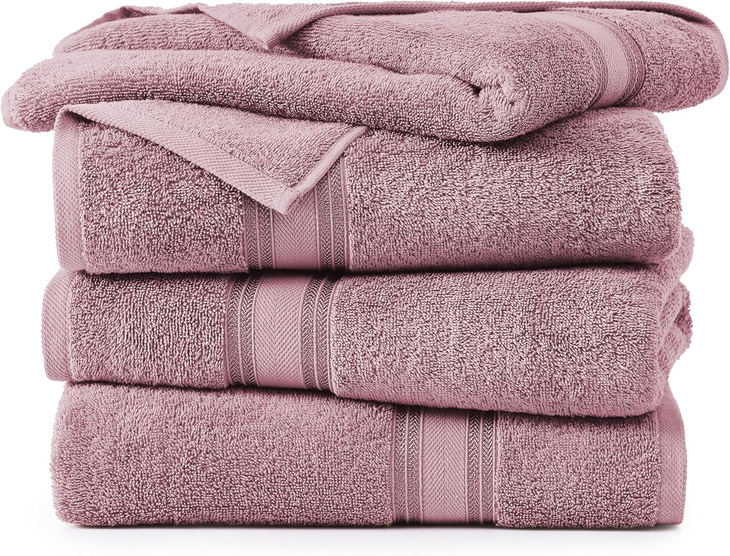 Lane Linen 100% Cotton Bath Sheets 4 Pack (35"x66") - Zero Twist Cotton Extra Large Bath Towels Set - Quick Dry, Soft & Absorbent Oversized Towel Set - Holds Well after Multiple Washes - Wishful Mauve