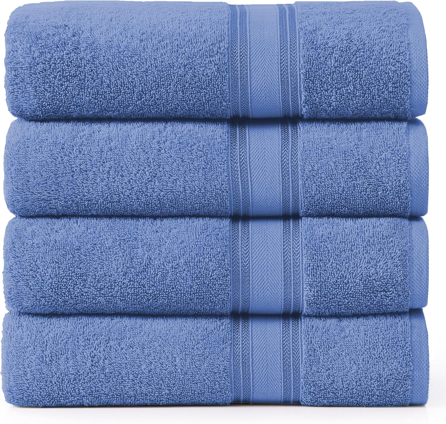 LANE LINEN 100% Cotton 4 Pack Bath Sheets (35"x66") - Zero Twist Cotton Extra Large Bathroom Towels - Quick Dry, Soft & Absorbent Oversized Bath Towels - Machine Wash in Cold Water - Cerulean Blue