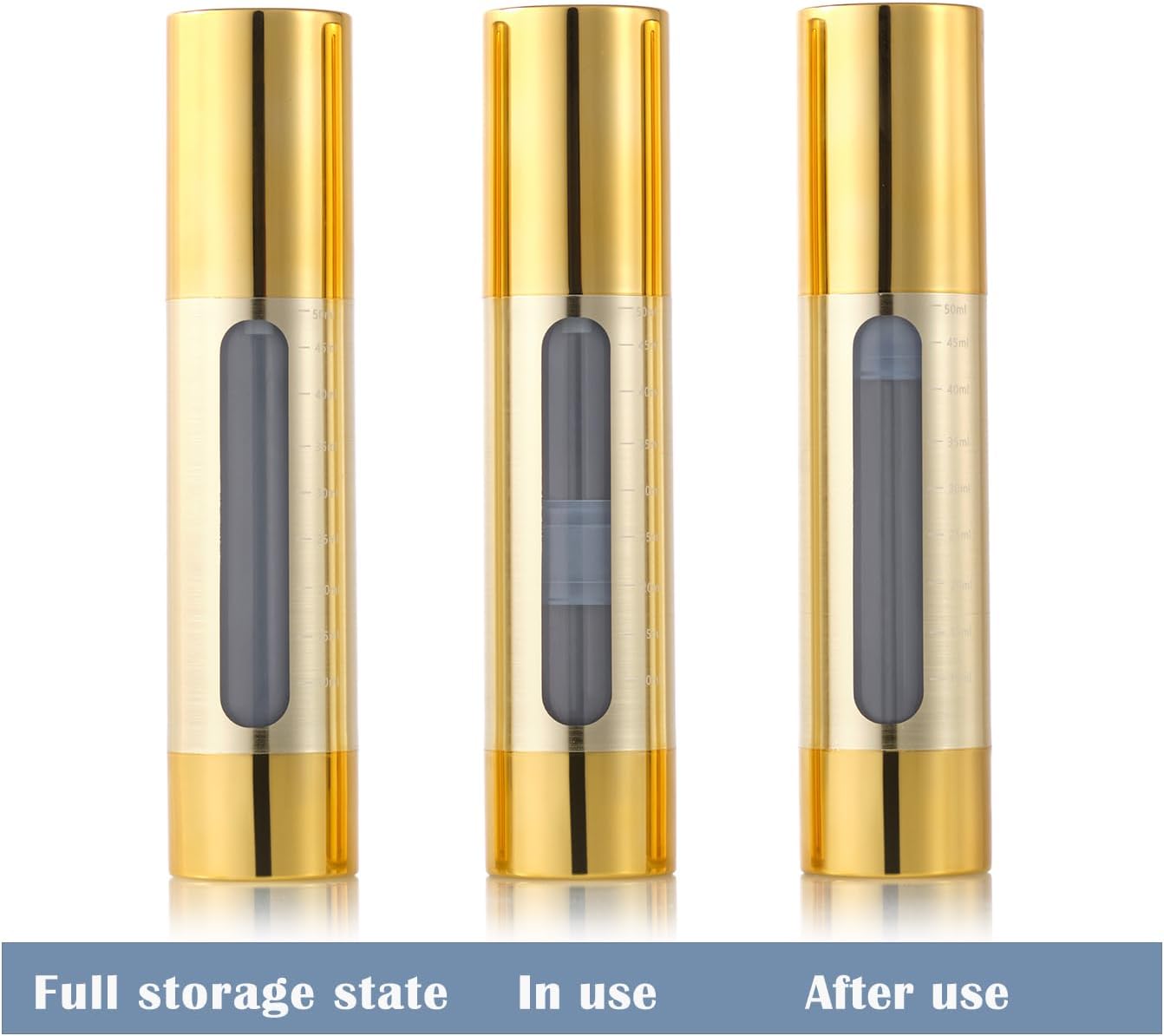 - 【Noble Appearance & High Quality】 The noble golden appearance design and high-quality ABS material will bring you an unparalleled user experience. This airless vacuum pump bottle is also a good choice as a gift.