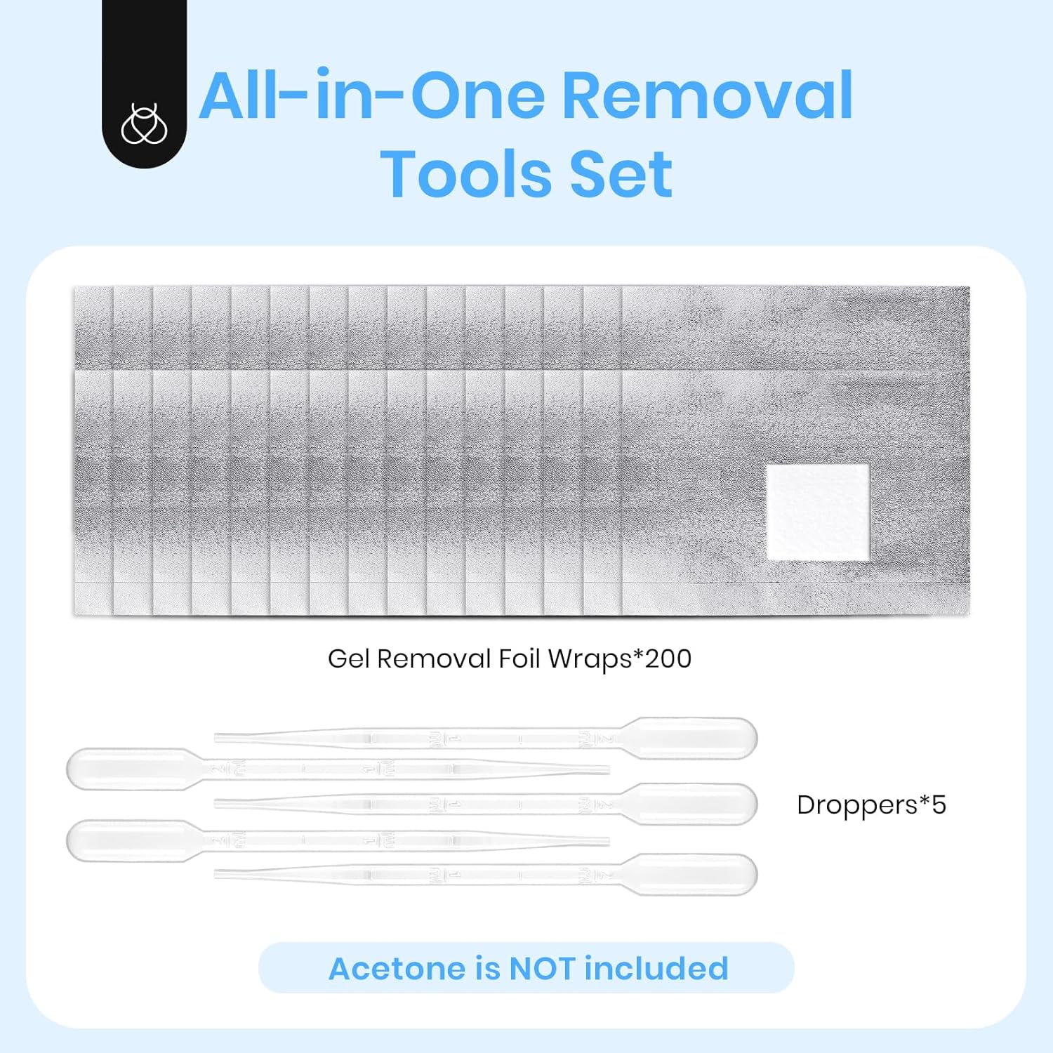 - 【2024 beetles Gel Nail Polish Remover Kit】WHAT YOU GET: 200 Pcs nail soak off foil wraps with Pre-attached Lint Free Cotton Pads and 5 Pcs Droppers. (PLEASE NOTE: Acetone is NOT included)